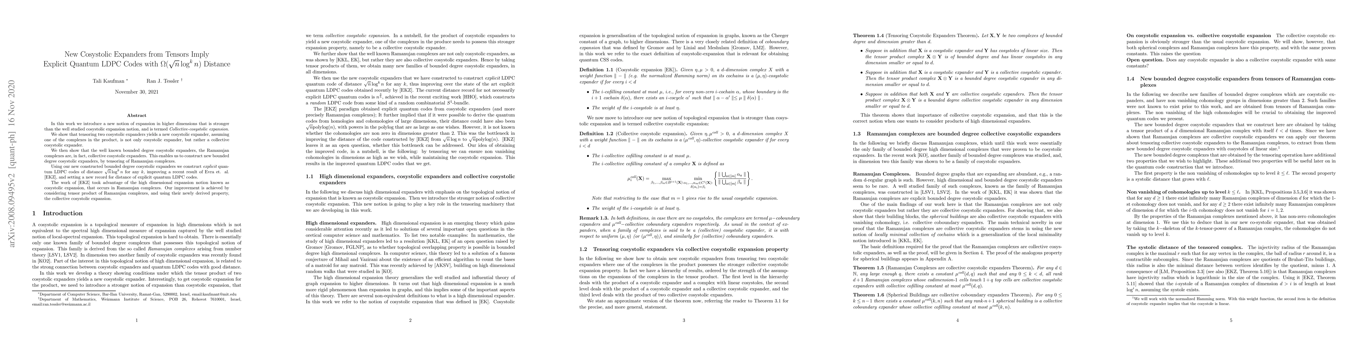 This paper introduces a novel concept of "collective-cosystolic expansion" in higher dimensions, stronger than traditional cosystolic expansion, and demonstrates its application in tensoring Ramanujan complexes to construct new bounded degree cosystolic expanders. These expanders enable the creation of explicit quantum LDPC codes with a distance of $\Omega(\sqrt{n}\log^kn)$, surpassing previous results.