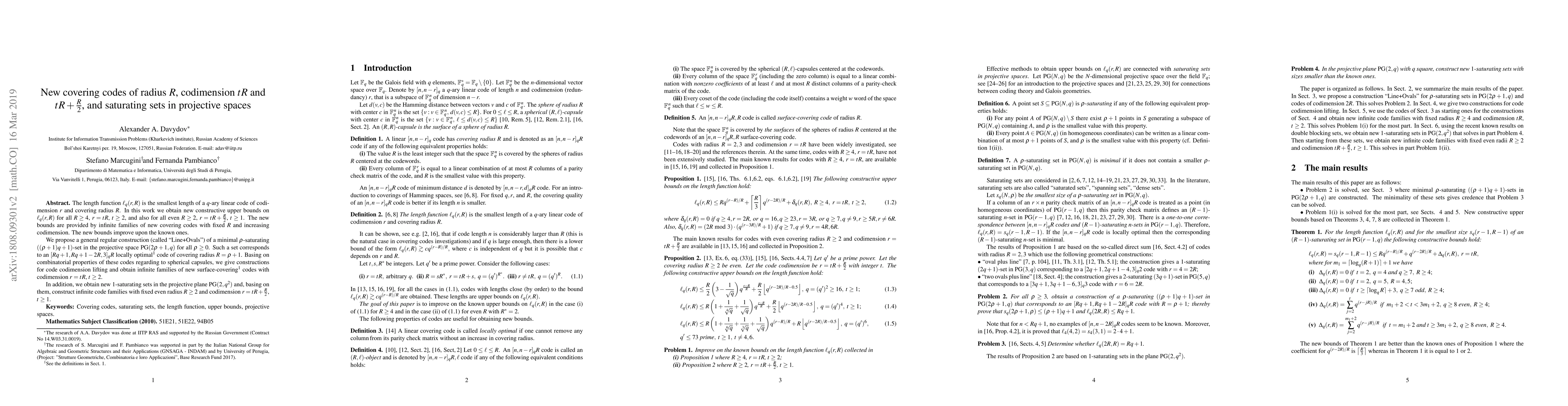 Alexander A. Davydov, Stefano Marcugini, Fernanda Pambianco