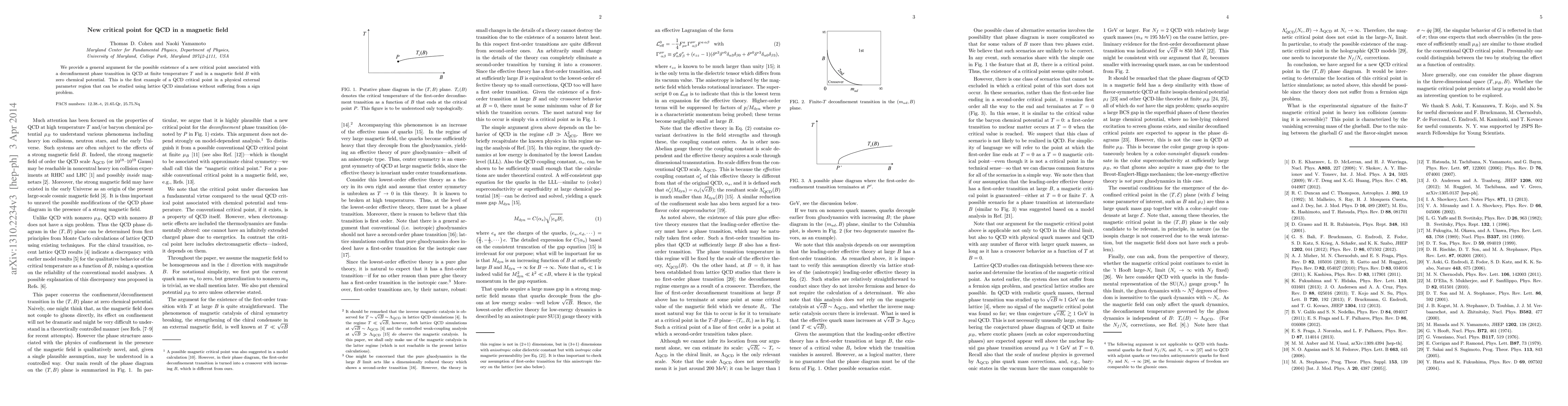 Summary: This paper argues for a new critical point in Quantum Chromodynamics (QCD) at finite temperature and magnetic field, suggesting a deconfinement phase transition without a sign problem, enabling lattice QCD simulations.