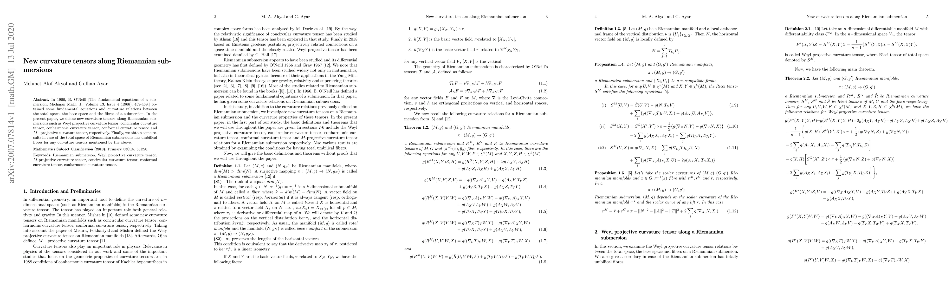 In 1966, B. O'Neill [The fundamental equations of a submersion, Michigan Math. J., Volume 13, Issue 4 (1966), 459-469.] obtained some fundamental equations and curvature relations between the total space, the base space and the fibres of a submersion. In the present paper, we define new curvature tensors along Riemannian submersions such as Weyl projective curvature tensor, concircular curvature tensor, conharmonic curvature tensor, conformal curvature tensor and $M-$projective curvature tensor, respectively. Finally, we obtain some results in case of the total space of Riemannian submersions has umbilical fibres for any curvature tensors mentioned by the above.