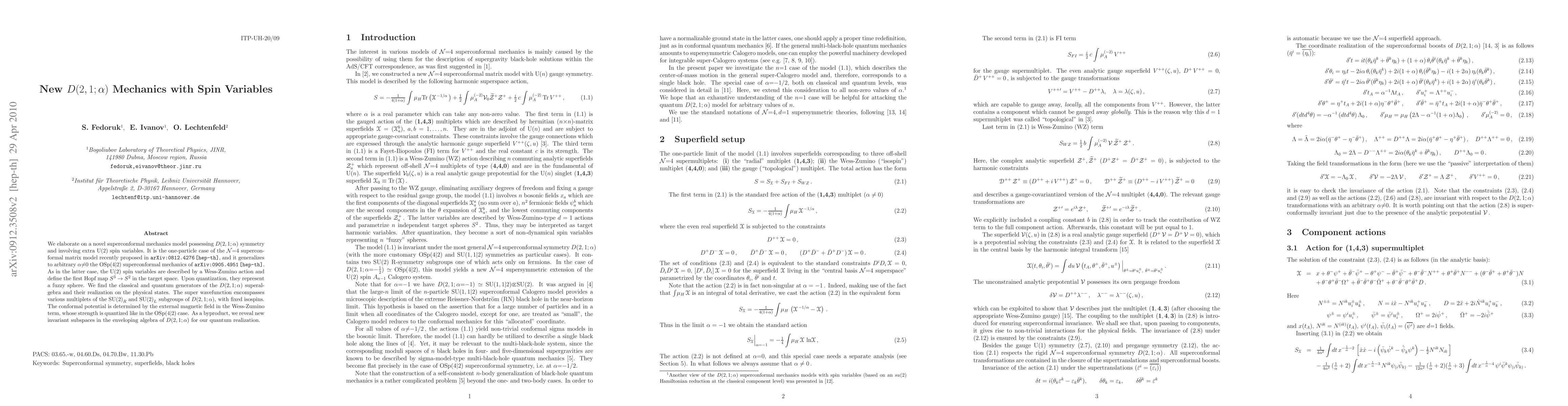 This paper introduces a new superconformal mechanics model featuring D(2,1;alpha) symmetry and U(2) spin variables, generalizing an earlier OSp(4|2) model. The spin variables describe a fuzzy sphere and define the first Hopf map, revealing new invariant subspaces in the algebra of D(2,1;alpha).
