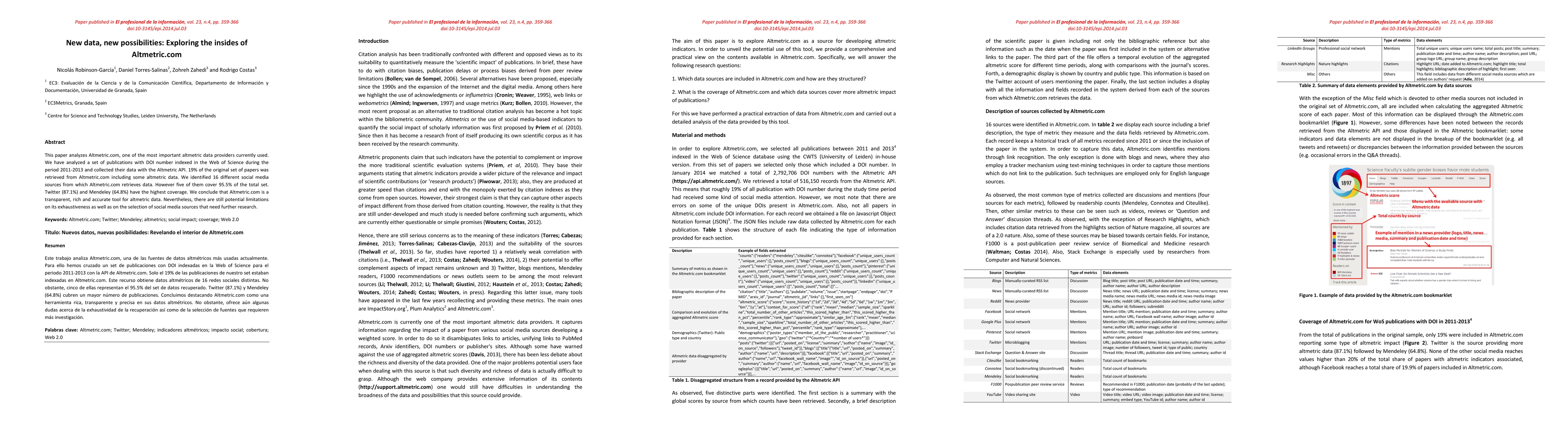 This paper evaluates Altmetric.com, a key altmetric data provider, by analyzing publications indexed in the Web of Science from 2011-2013. It finds that Altmetric.com retrieves data from 16 social media sources, with Twitter and Mendeley covering the majority of altmetric data, concluding the tool is transparent, rich, and accurate but noting potential limitations in exhaustiveness and source selection.