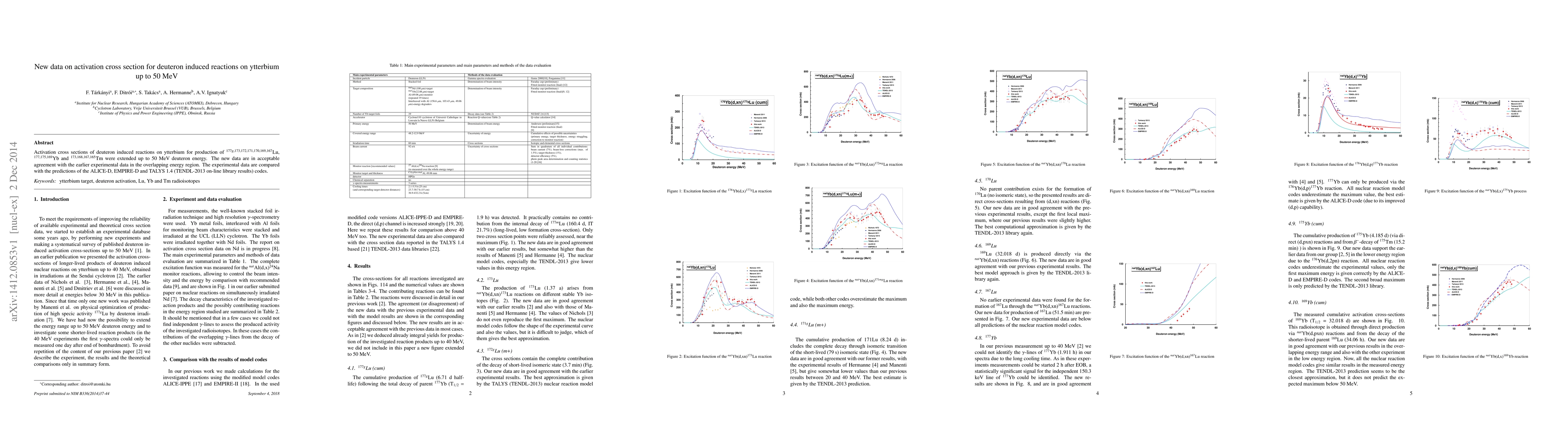 This study presents new activation cross section data for deuteron-induced reactions on ytterbium up to 50 MeV for various lanthanide isotopes, showing good agreement with previous experiments and comparisons with theoretical predictions from several nuclear reaction codes.