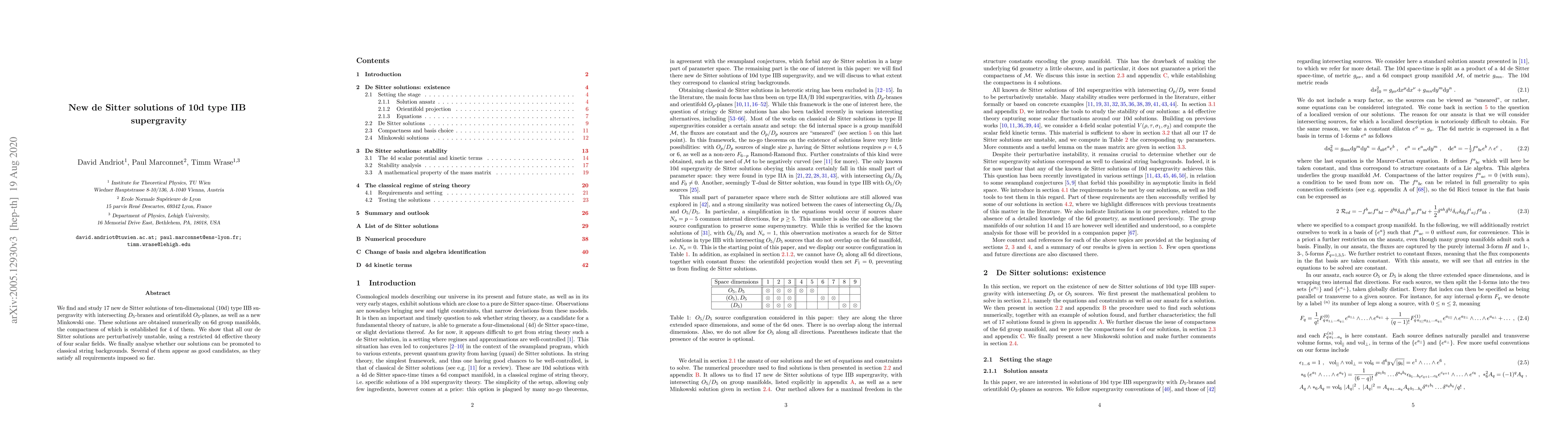 This paper presents 17 new de Sitter solutions in 10d type IIB supergravity derived from intersecting D5-branes and orientifold O5-planes, along with a new Minkowski solution, all found numerically. The authors demonstrate the perturbative instability of these de Sitter solutions and explore their potential to be promoted to classical string backgrounds, with several showing promising candidacy.