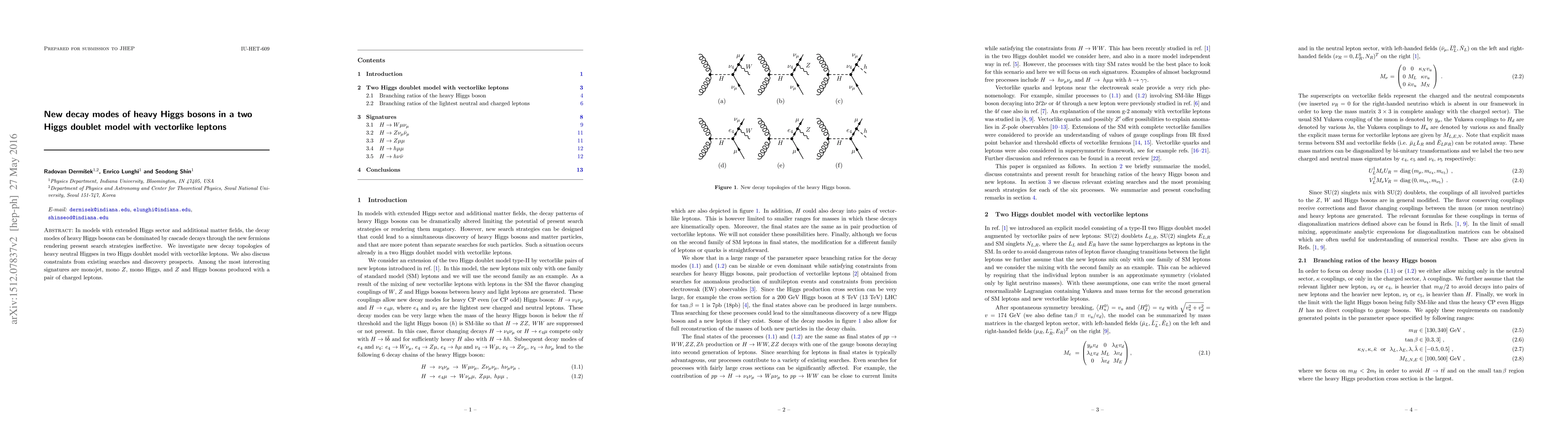 In models with extended Higgs sector and additional matter fields, the decay modes of heavy Higgs bosons can be dominated by cascade decays through the new fermions rendering present search strategies ineffective. We investigate new decay topologies of heavy neutral Higgses in two Higgs doublet model with vectorlike leptons. We also discuss constraints from existing searches and discovery prospects. Among the most interesting signatures are monojet, mono Z, mono Higgs, and Z and Higgs bosons produced with a pair of charged leptons.