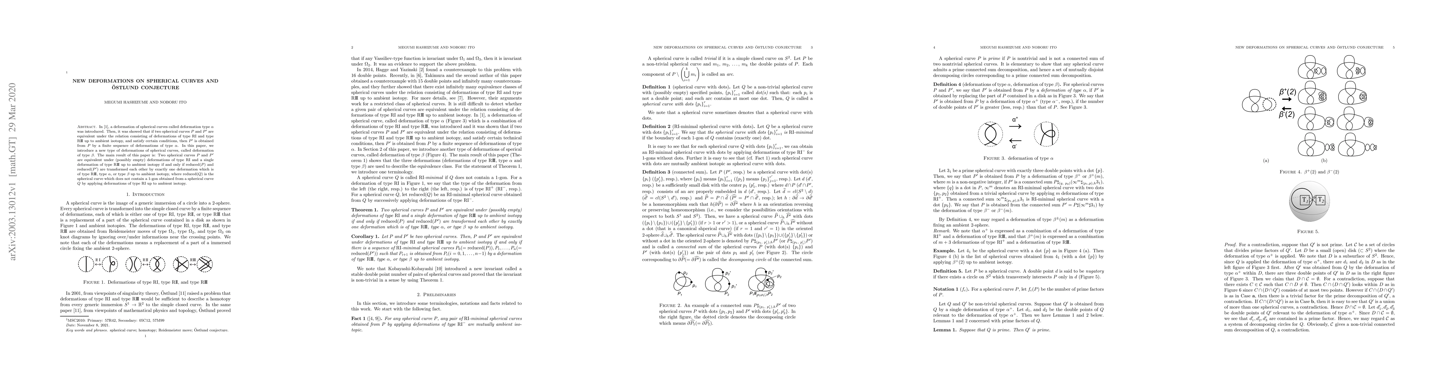 This paper introduces a new deformation type $eta$ for spherical curves, expanding on previous work by Funakoshi et al. It establishes that two spherical curves $P$ and $P'$ are equivalent under specific deformations if and only if they can be transformed into each other via a single deformation of types RIII, $alpha$, or $eta$ under ambient isotopy, given that their reduced forms meet certain conditions.