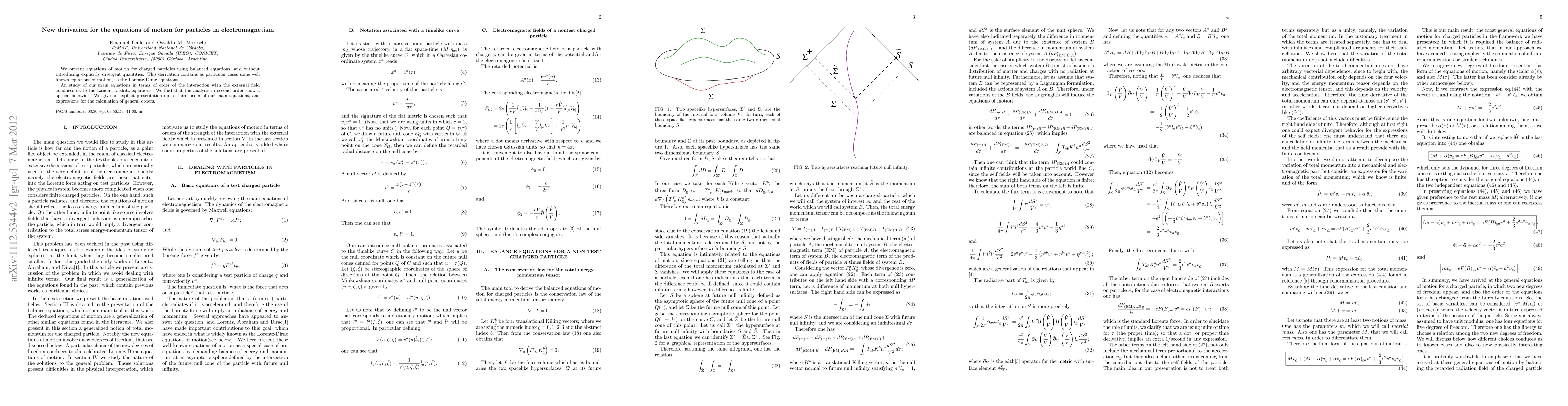 This paper presents a new derivation of the equations of motion for charged particles in electromagnetism, avoiding divergent quantities and encompassing known equations like the Lorentz-Dirac and Landau-Lifshitz equations. The analysis reveals special behavior in second-order interactions and provides expressions for calculations up to third order and beyond.