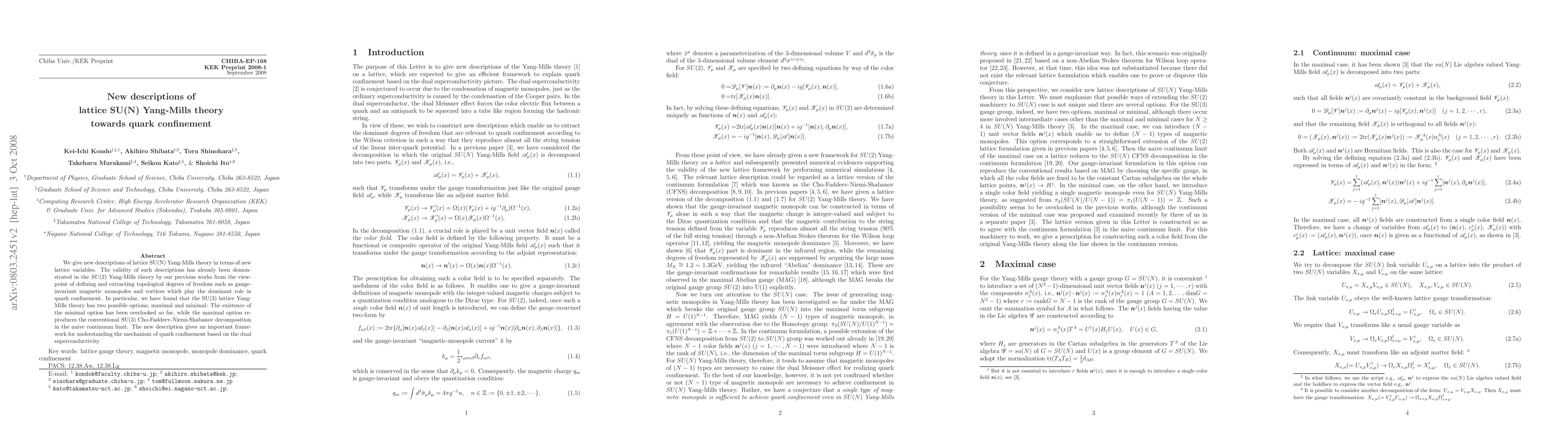 The paper introduces new lattice variables for describing lattice SU(N) Yang-Mills theory, revealing overlooked minimal options in SU(3) theory alongside the conventional maximal option. This new framework aids in understanding quark confinement via dual superconductivity.