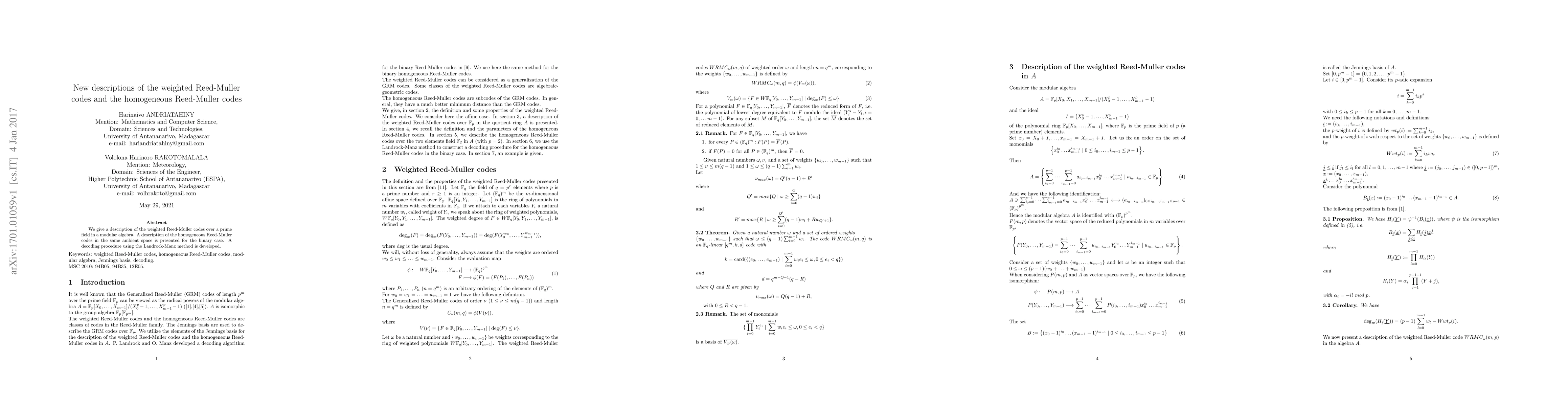 Summary: This paper provides detailed descriptions of weighted and homogeneous Reed-Muller codes over prime fields in modular algebra, along with a novel decoding procedure using the Landrock-Manz method for the binary case.