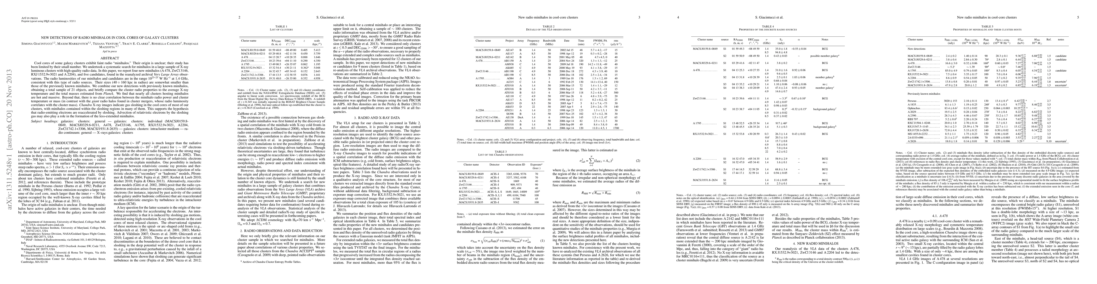 This paper reports the discovery of four new radio minihalos in cool cores of galaxy clusters, along with five candidates, expanding the known sample to 21. The minihalos are found in hot, massive clusters, suggesting a link to cluster dynamics rather than mass or temperature.
