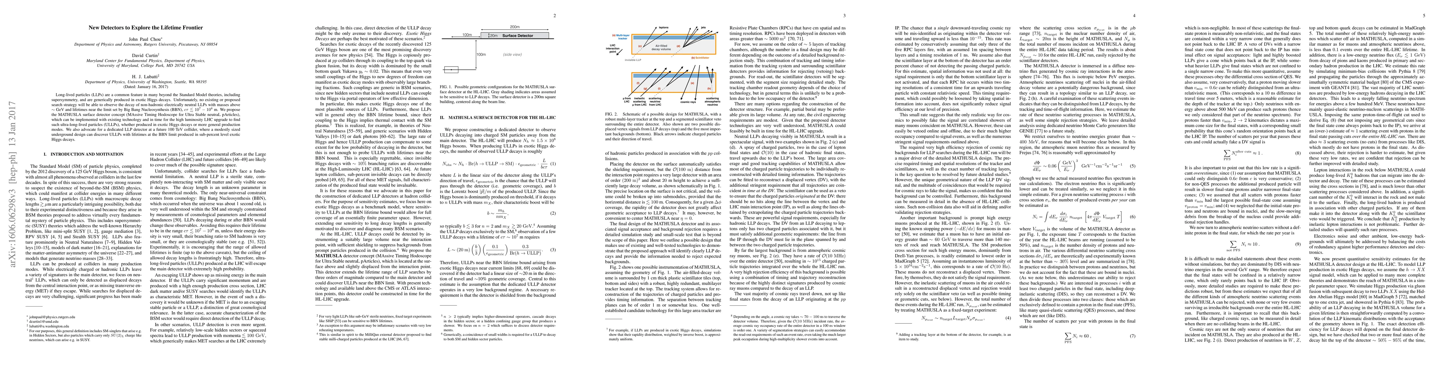 Researchers propose a new detector concept called MATHUSLA to find ultra-long-lived particles with masses above GeV and lifetimes near the Big Bang Nucleosynthesis limit, which could be produced in exotic Higgs decays or other production modes.