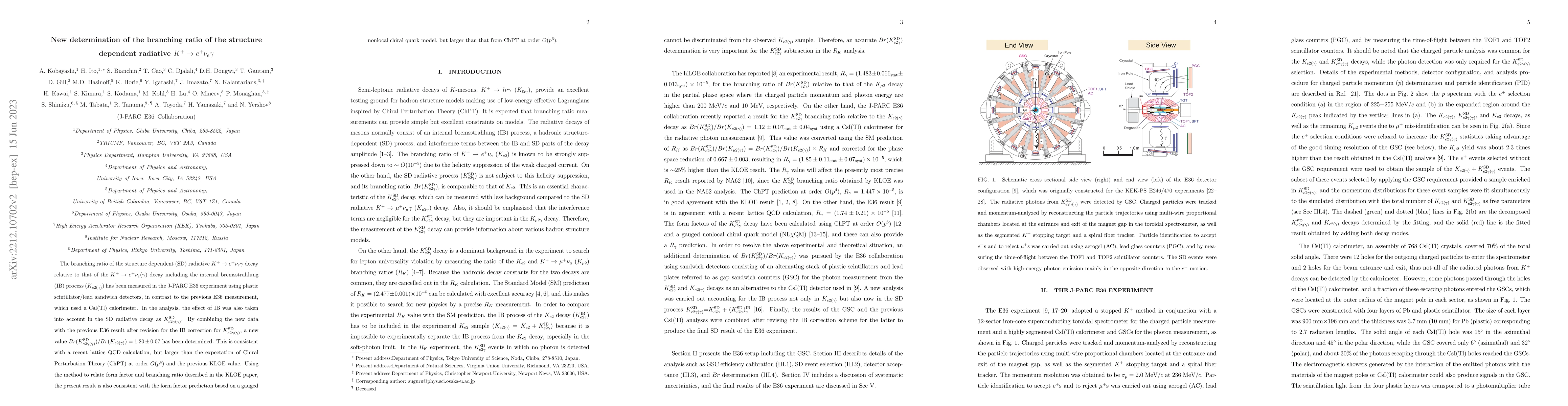 The J-PARC E36 experiment has determined the branching ratio of the structure dependent radiative $K^{+} \to e^{+} \nu_{e} \gamma$ decay relative to the $K^+\rightarrow e^+ \nu_{e}$ decay, yielding a new value $Br(K_{e2\gamma(\gamma)}^{\rm SD})/Br(K_{e2(\gamma)})=1.20\pm0.07$. This result is consistent with lattice QCD but exceeds predictions from Chiral Perturbation Theory and previous KLOE measurements.