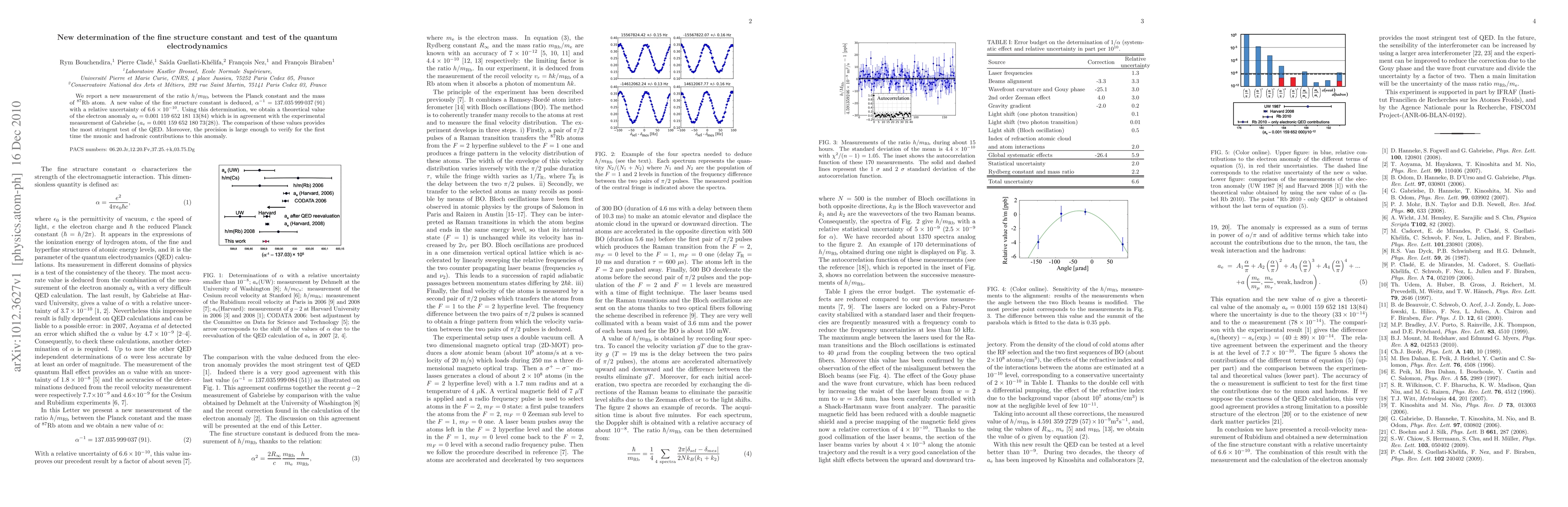 This paper reports a new, highly precise measurement of the fine structure constant, $\alpha^{-1}$, derived from the ratio $h/m_{\mathrm{Rb}}$, achieving a relative uncertainty of $6.6\times 10^{-10}$. This determination is used to validate quantum electrodynamics (QED) through a close agreement with experimental measurements of the electron anomaly.