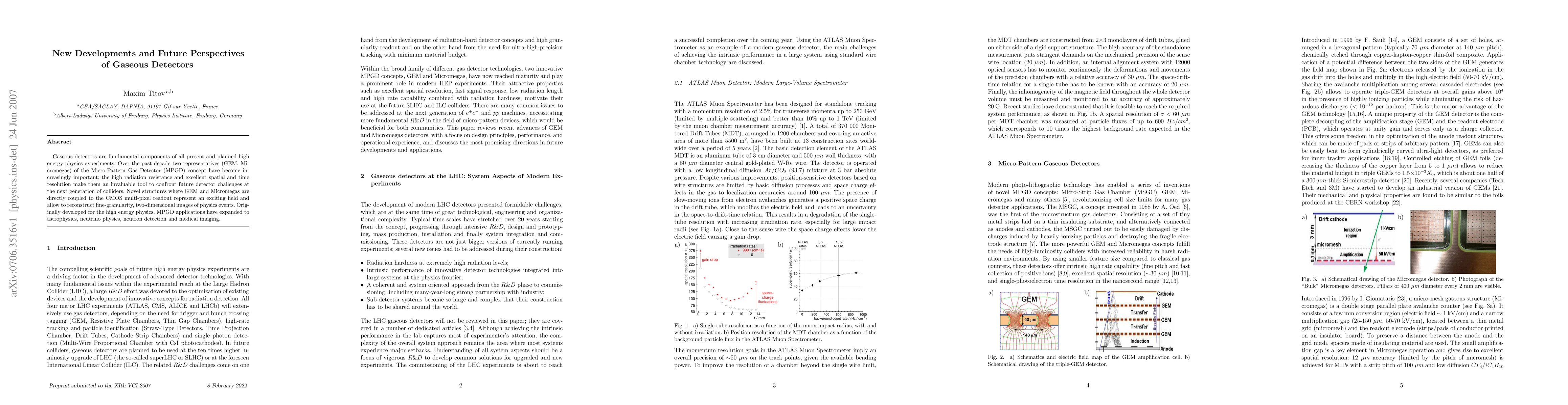 Gaseous detectors are fundamental components of all present and planned high energy physics experiments. Over the past decade two representatives (GEM, Micromegas) of the Micro-Pattern Gas Detector (MPGD) concept have become increasingly important; the high radiation resistance and excellent spatial and time resolution make them an invaluable tool to confront future detector challenges at the next generation of colliders. Novel structures where GEM and Micromegas are directly coupled to the CMOS multi-pixel readout represent an exciting field and allow to reconstruct fine-granularity, two-dimensional images of physics events. Originally developed for the high energy physics, MPGD applications have expanded to astrophysics, neutrino physics, neutron detection and medical imaging.