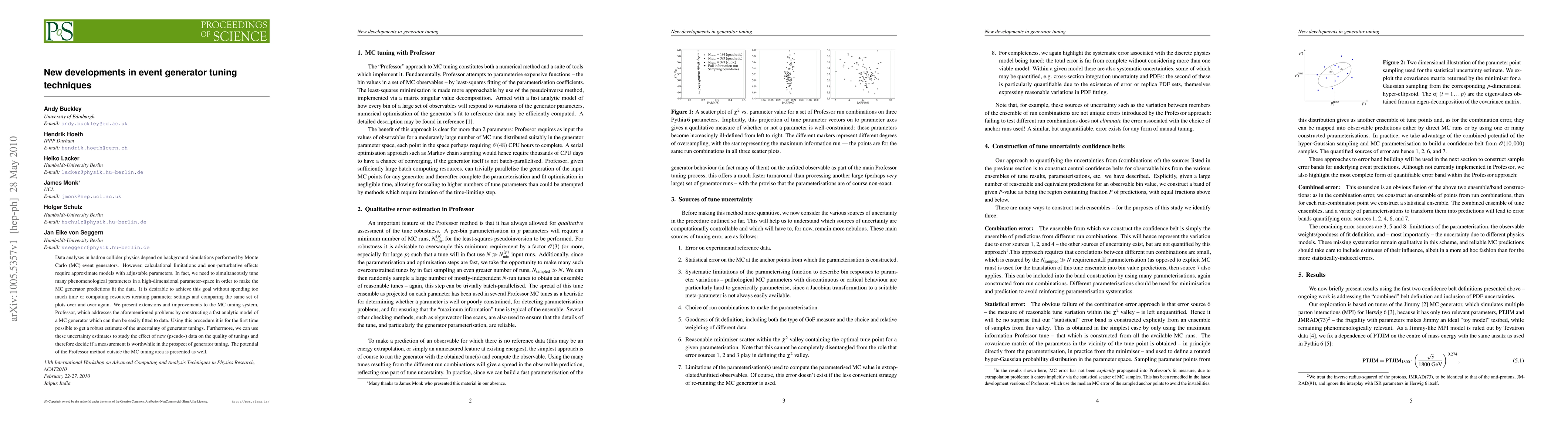 Data analyses in hadron collider physics depend on background simulations performed by Monte Carlo (MC) event generators. However, calculational limitations and non-perturbative effects require approximate models with adjustable parameters. In fact, we need to simultaneously tune many phenomenological parameters in a high-dimensional parameter-space in order to make the MC generator predictions fit the data. It is desirable to achieve this goal without spending too much time or computing resources iterating parameter settings and comparing the same set of plots over and over again. We present extensions and improvements to the MC tuning system, Professor, which addresses the aforementioned problems by constructing a fast analytic model of a MC generator which can then be easily fitted to data. Using this procedure it is for the first time possible to get a robust estimate of the uncertainty of generator tunings. Furthermore, we can use these uncertainty estimates to study the effect of new (pseudo-) data on the quality of tunings and therefore decide if a measurement is worthwhile in the prospect of generator tuning. The potential of the Professor method outside the MC tuning area is presented as well.