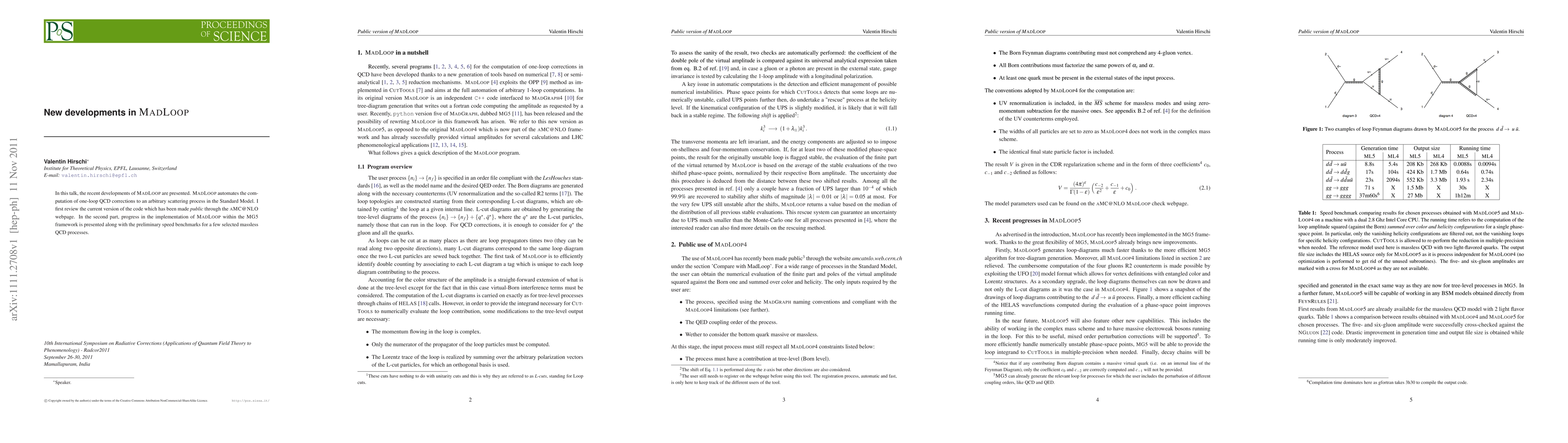 This proceeding relates the recent developments of the MadLoop tool. MadLoop automates the computation of one-loop QCD corrections to an arbitrary scattering process in the Standard Model. I first review the current version of the code which has been made public through the aMCatNLO webpage. In the second part, progress in the implementation of MadLoop within the MG5 framework is presented along with the preliminary speed benchmarks for a few selected massless QCD processes.