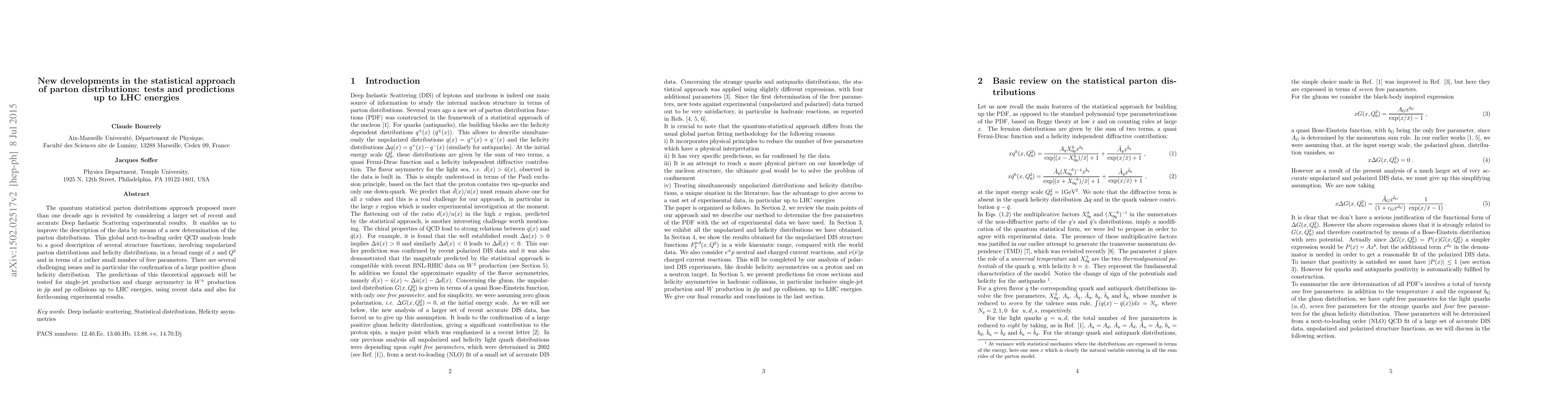 This paper revisits the quantum statistical parton distributions approach, refining parton distribution functions using recent Deep Inelastic Scattering data. The new global next-to-leading order QCD analysis provides a good fit for various structure functions and predicts outcomes for single-jet production and charge asymmetry in $W^{\pm}$ production at LHC energies.