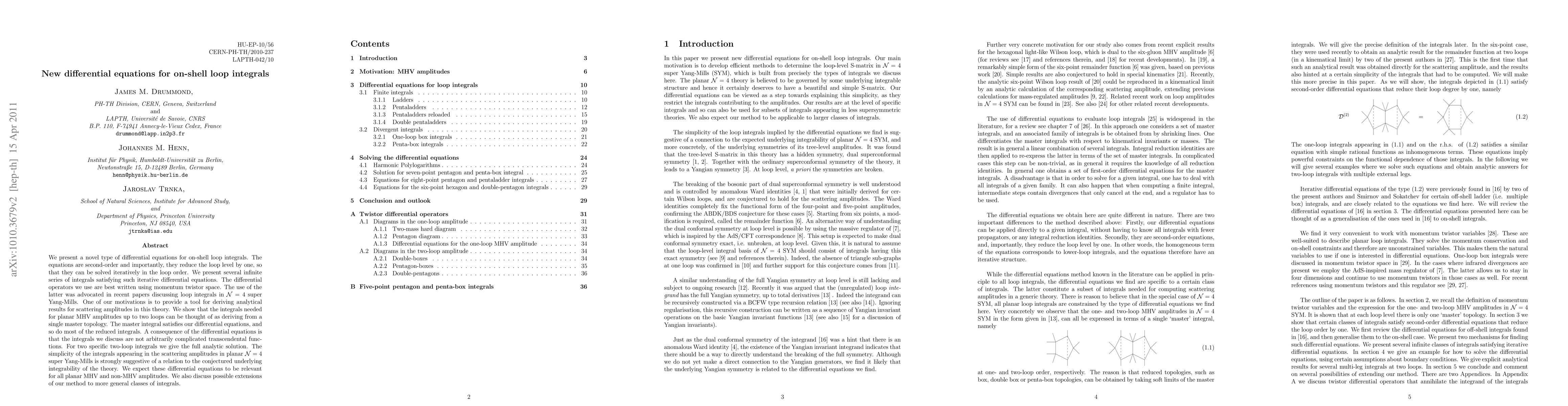 This paper introduces new second-order differential equations for on-shell loop integrals that reduce the loop level by one, facilitating iterative solutions. The authors demonstrate their utility in simplifying integrals for planar N=4 super Yang-Mills scattering amplitudes, suggesting a link to the theory's conjectured integrability.