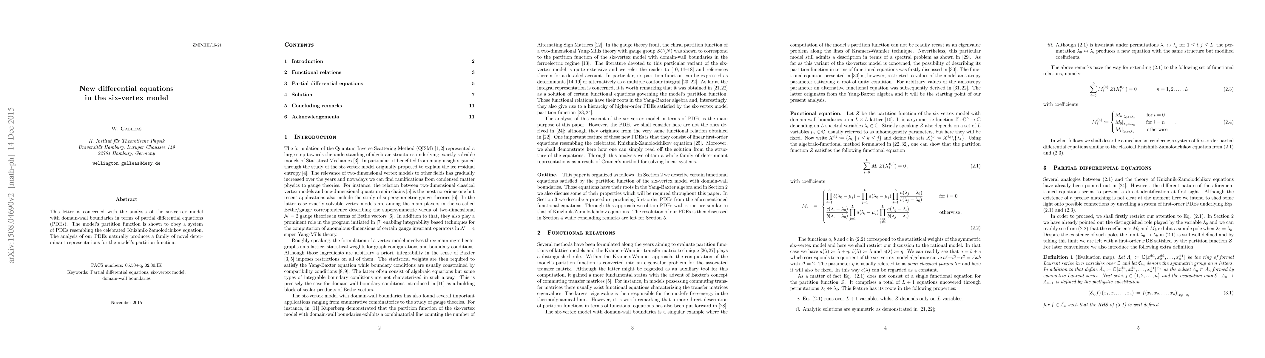 Researchers analyzed the six-vertex model using partial differential equations, discovering a family of novel determinant representations for its partition function.