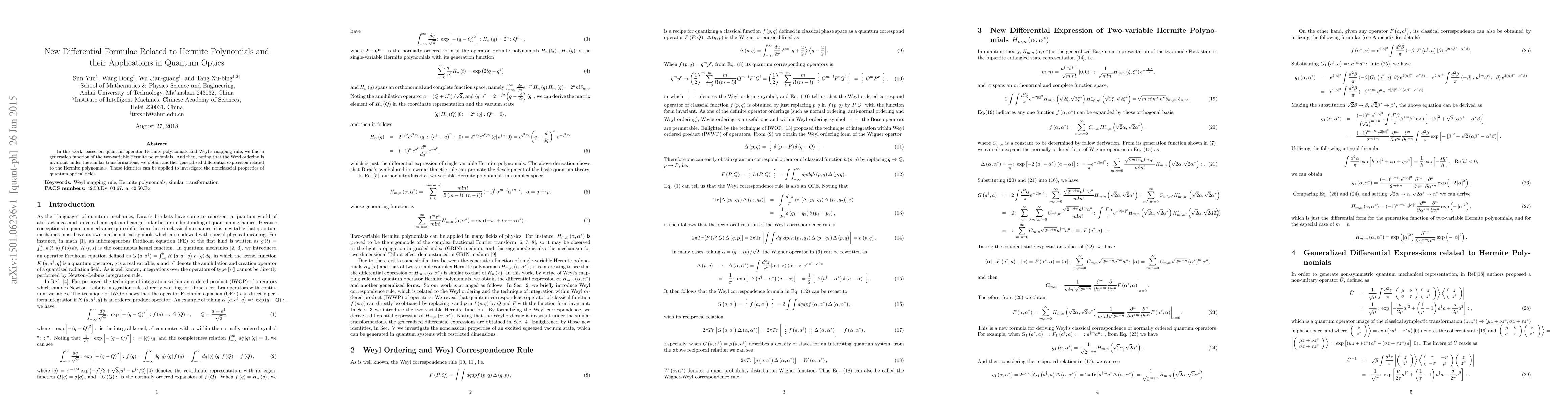 Researchers discovered new differential formulae related to Hermite polynomials, which can be used to investigate nonclassical properties of quantum optical fields.