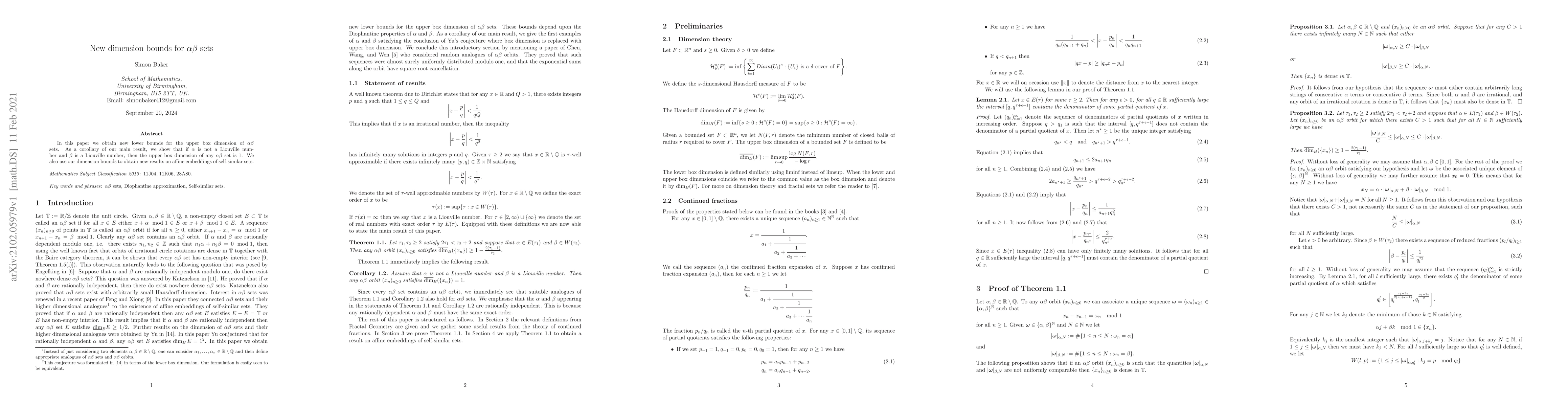 This paper establishes new lower bounds for the upper box dimension of $\alpha\beta$ sets, demonstrating that if $\alpha$ is non-Liouville and $\beta$ is Liouville, the upper box dimension is $1$. Additionally, the research provides new insights into affine embeddings of self-similar sets.