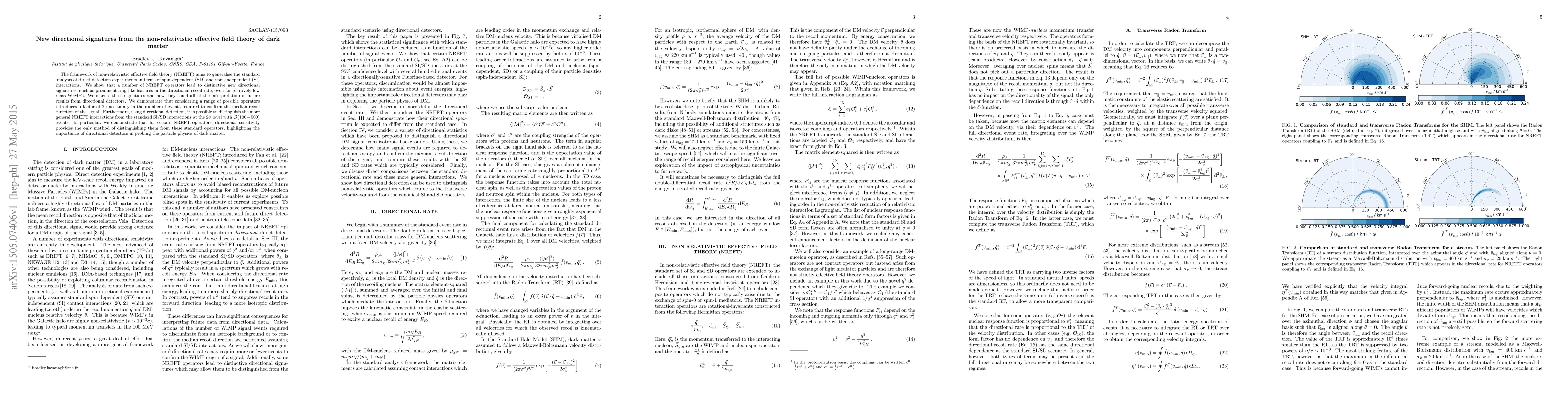 This paper explores the non-relativistic effective field theory (NREFT) for dark matter, revealing new directional signatures, including ring-like features in directional recoil rates, which can distinguish NREFT interactions from standard spin-independent/dependent interactions, emphasizing the significance of directional detectors in dark matter research.