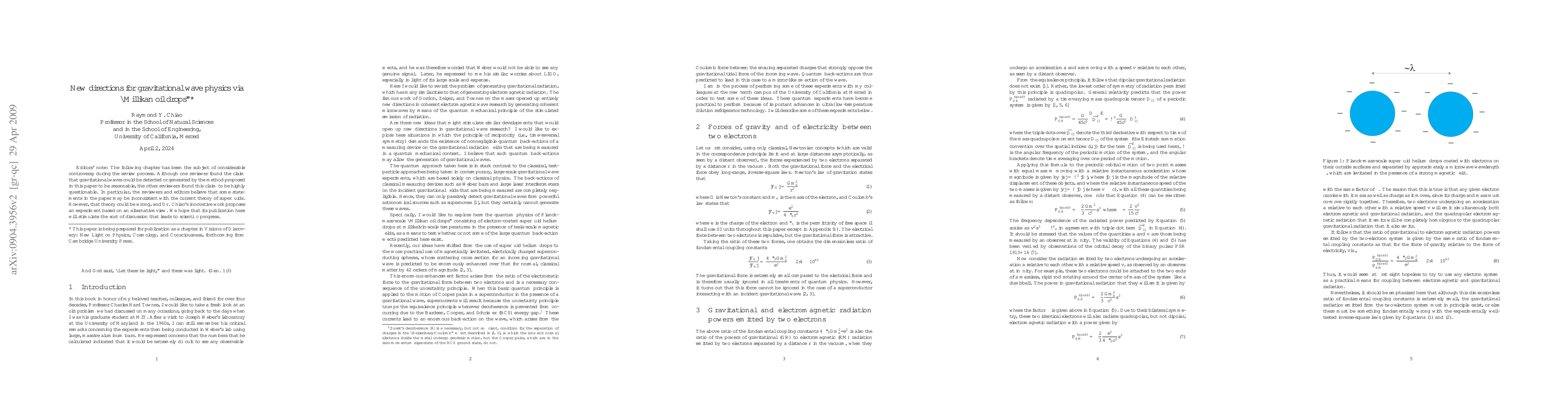 "Millikan oil drops" are drops of superfluid helium coated with electrons, and levitated in a strong, inhomogeneous magnetic field. When the temperature of the system becomes very low compared to the cyclotron gap energy, the system remains in its quantum ground state. Two such levitated charged drops can have their charge-to-mass ratio critically adjusted so that the forces of gravity and electricity between the drops are in balance. Then it is predicted that the amount of scattered electromagnetic and gravitational radiation from the drops are equalized, along with these two kinds of forces. The cross sections for the scattering of the two kinds of radiation can become large, hard-sphere cross-sections at the first Mie resonance, due to the hard-wall boundary conditions on the surfaces of the spheres for both kinds of radiations. An efficient quantum transduction process between electromagnetic and gravitational radiation by such a pair of drops is predicted at microwave frequencies, and a Hertz-like experiment is proposed. A more practical implementation of these ideas to use pairs of levitated, charged superconducting spheres is briefly discussed.