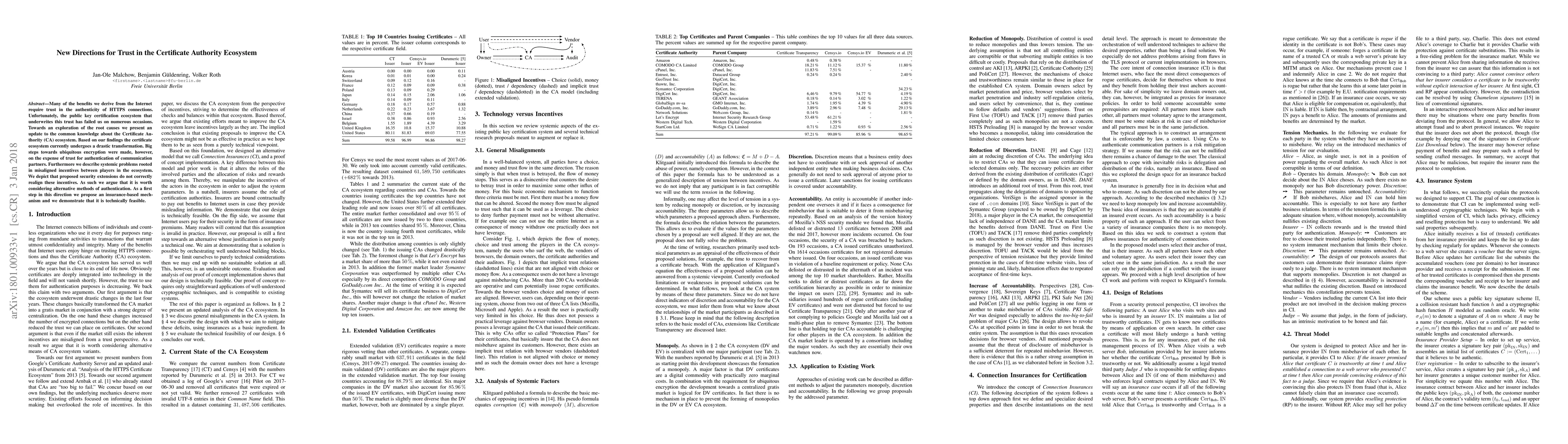 Many of the benefits we derive from the Internet require trust in the authenticity of HTTPS connections. Unfortunately, the public key certification ecosystem that underwrites this trust has failed us on numerous occasions. Towards an exploration of the root causes we present an update to the common knowledge about the Certificate Authority (CA) ecosystem. Based on our findings the certificate ecosystem currently undergoes a drastic transformation. Big steps towards ubiquitous encryption were made, however, on the expense of trust for authentication of communication partners. Furthermore we describe systemic problems rooted in misaligned incentives between players in the ecosystem. We depict that proposed security extensions do not correctly realign these incentives. As such we argue that it is worth considering alternative methods of authentication. As a first step in this direction we propose an insurance-based mechanism and we demonstrate that it is technically feasible.