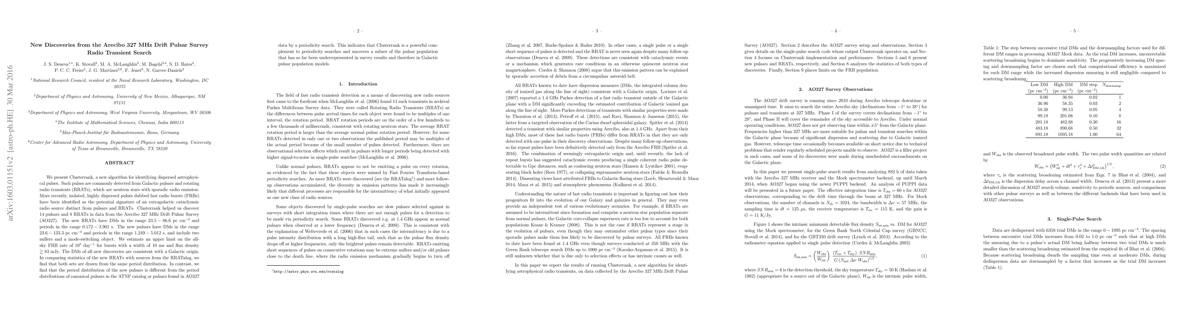 The paper introduces Clusterrank, a novel algorithm for identifying dispersed astrophysical pulses, leading to the discovery of 14 pulsars and 8 rotating radio transients (RRATs) in the Arecibo 327 MHz Drift Pulsar Survey. It also estimates an upper limit on the all-sky fast radio burst (FRB) rate. The findings suggest Clusterrank's effectiveness in uncovering an underrepresented subset of pulsars.
