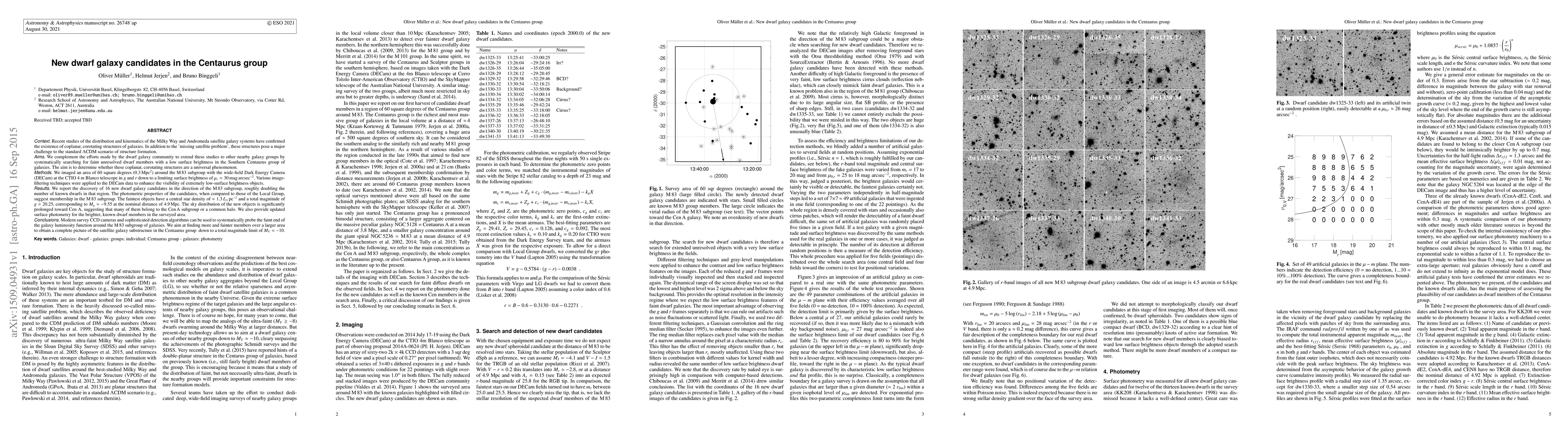 Recent studies of the distribution and kinematics of the Milky Way and Andromeda satellite galaxy systems have confirmed the existence of coplanar, corotating structures of galaxies. In addition to the 'missing satellite problem', these structures pose a major challenge to the standard $\Lambda$CDM scenario of structure formation. We complement the efforts made by the dwarf galaxy community to extend these studies to other nearby galaxy groups by systematically searching for faint, unresolved dwarf members with a low surface brightness in the Southern Centaurus group of galaxies. The aim is to determine whether these coplanar, corotating structures are a universal phenomenon. We imaged an area of 60 square degrees (0.3 Mpc$^2$) around the M83 subgroup with the wide-field Dark Energy Camera (DECam) at the CTIO 4 m Blanco telescope in $g$ and $r$ down to a limiting surface brightness of $\mu_r\approx 30$ mag arcsec$^{-2}$. Various image-filtering techniques were applied to the DECam data to enhance the visibility of extremely low-surface brightness objects. We report the discovery of 16 new dwarf galaxy candidates in the direction of the M83 subgroup, roughly doubling the number of known dwarfs in that region. The photometric properties of the candidates, when compared to those of the Local Group, suggest membership in the M83 subgroup. The faintest objects have a central star density of $\approx1.3 L_\odot$ pc$^{-2}$ and a total magnitude of $g = 20.25$, corresponding to $M_g = -9.55$ at the nominal distance of 4.9 Mpc. The sky distribution of the new objects is significantly prolonged toward Cen A, suggesting that many of them belong to the Cen A subgroup or a common halo. We also provide updated surface photometry for the brighter, known dwarf members in the surveyed area.