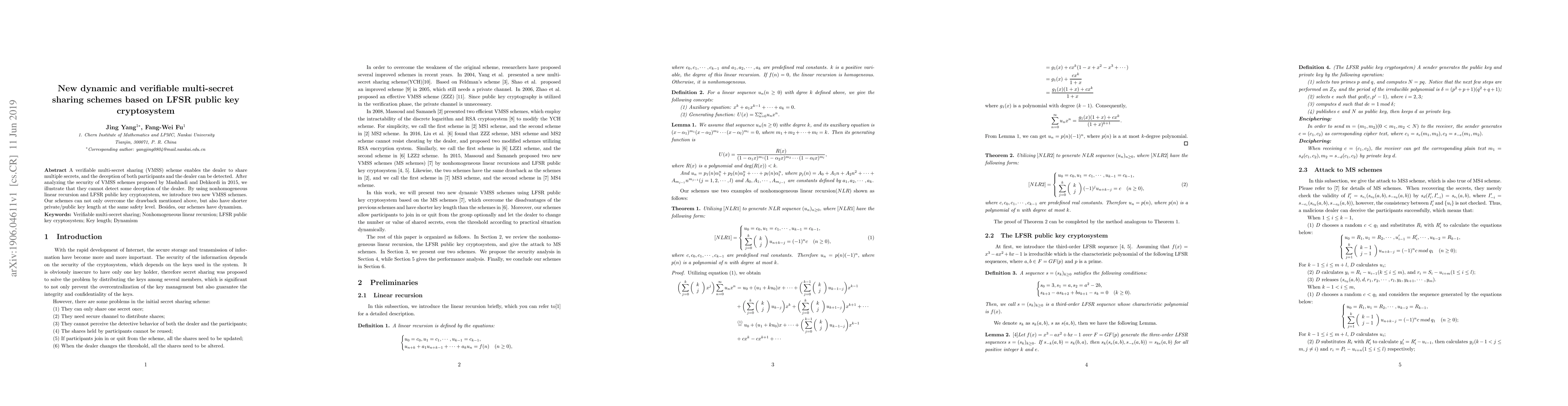 This paper introduces two new dynamic and verifiable multi-secret sharing schemes based on LFSR public key cryptosystem, addressing the limitations of previous VMSS schemes by Mashhadi and Dehkordi. The new schemes offer enhanced detection of deception and require shorter key lengths while maintaining security.