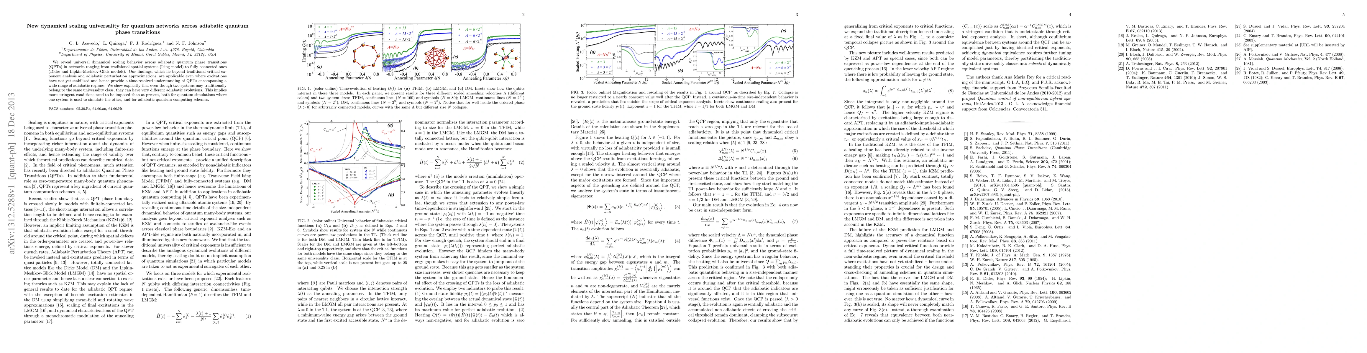 We reveal universal dynamical scaling behavior across adiabatic quantum phase transitions (QPTs) in networks ranging from traditional spatial systems (Ising model) to fully connected ones (Dicke and Lipkin-Meshkov-Glick models). Our findings, which lie beyond traditional critical exponent analysis and adiabatic perturbation approximations, are applicable even where excitations have not yet stabilized and hence provide a time-resolved understanding of QPTs encompassing a wide range of adiabatic regimes. We show explicitly that even though two systems may traditionally belong to the same universality class, they can have very different adiabatic evolutions. This implies more stringent conditions need to be imposed than at present, both for quantum simulations where one system is used to simulate the other, and for adiabatic quantum computing schemes.
