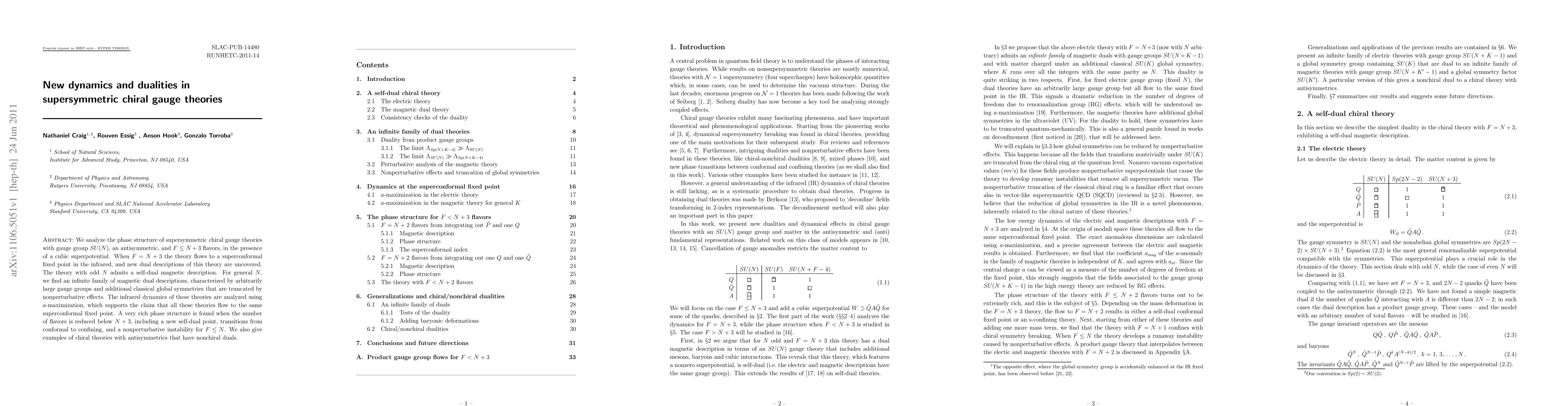 This paper explores the phase structure of supersymmetric chiral gauge theories with SU(N) gauge groups and F flavors, revealing new dualities and self-dual magnetic descriptions. It finds that the theory flows to a superconformal fixed point when F=N+3, and uncovers an infinite family of magnetic duals for general N, characterized by large gauge groups and additional symmetries.