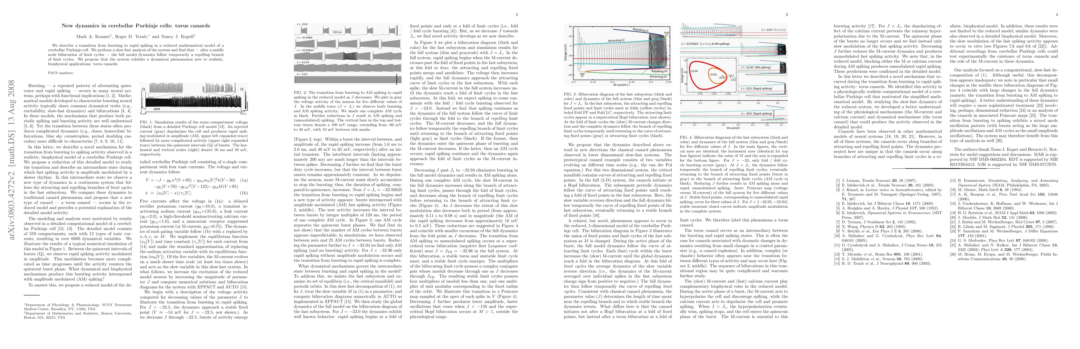This paper investigates a transition from bursting to rapid spiking in cerebellar Purkinje cells, revealing a novel dynamical phenomenon termed "torus canards" following a saddle node bifurcation of limit cycles in a reduced mathematical model. The study employs slow-fast analysis to elucidate these complex dynamics.