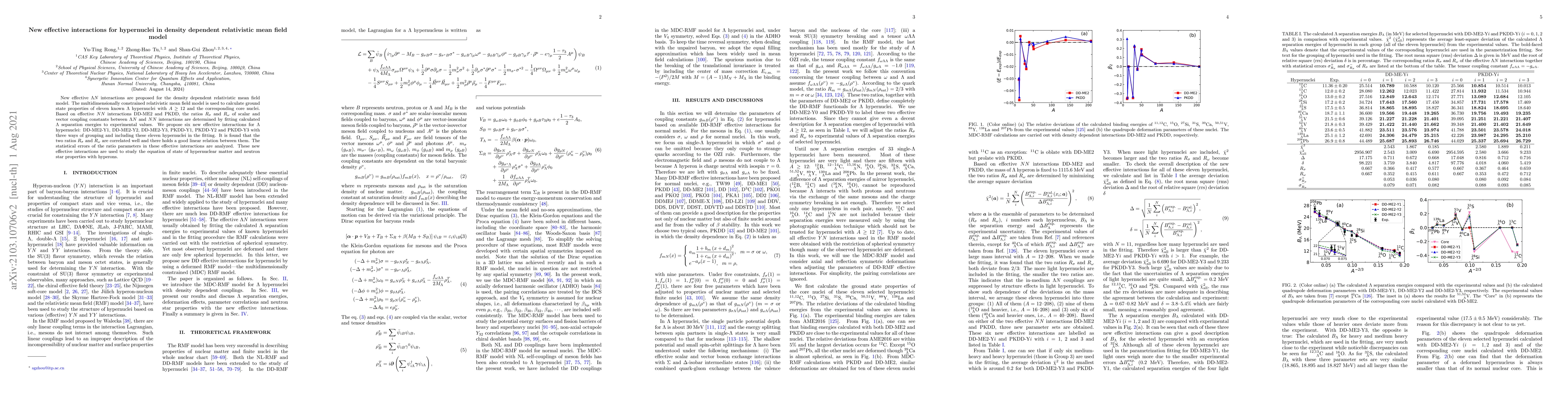 New effective $\Lambda N$ interactions are proposed for the density dependent relativistic mean field model. The multidimensionally constrained relativistic mean field model is used to calculate ground state properties of eleven known $\Lambda$ hypernuclei with $A\ge 12$ and the corresponding core nuclei. Based on effective $NN$ interactions DD-ME2 and PKDD, the ratios $R_\sigma$ and $R_\omega$ of scalar and vector coupling constants between $\Lambda N$ and $NN$ interactions are determined by fitting calculated $\Lambda$ separation energies to experimental values. We propose six new effective interactions for $\Lambda$ hypernuclei: DD-ME2-Y1, DD-ME2-Y2, DD-ME2-Y3, PKDD-Y1, PKDD-Y2 and PKDD-Y3 with three ways of grouping and including these eleven hypernuclei in the fitting. It is found that the two ratios $R_\sigma$ and $R_\omega$ are correlated well and there holds a good linear relation between them. The statistical errors of the ratio parameters in these effective interactions are analyzed. These new effective interactions are used to study the equation of state of hypernuclear matter and neutron star properties with hyperons.