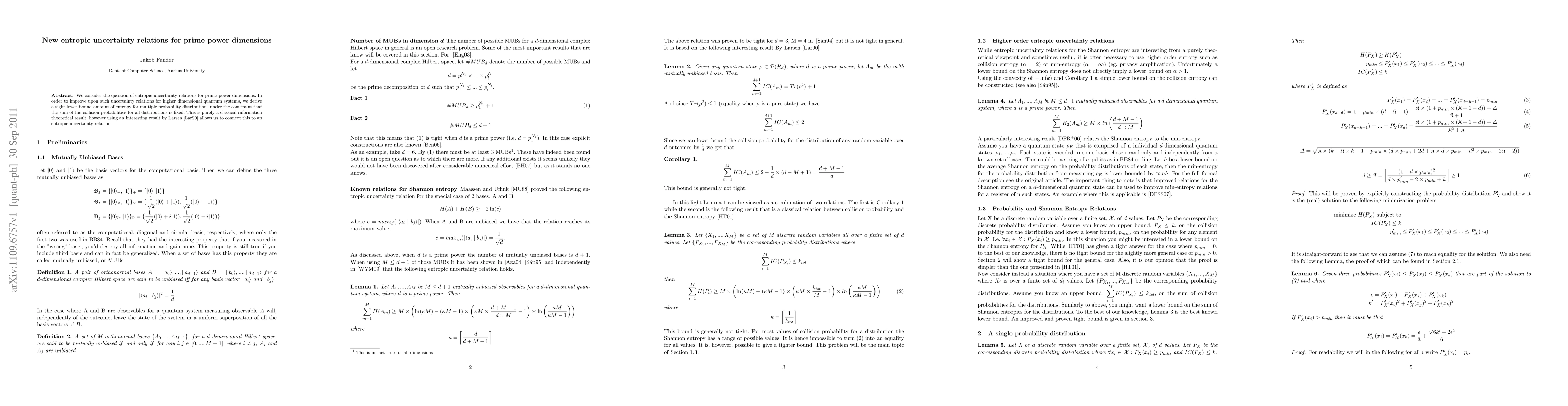 We consider the question of entropic uncertainty relations for prime power dimensions. In order to improve upon such uncertainty relations for higher dimensional quantum systems, we derive a tight lower bound amount of entropy for multiple probability distributions under the constraint that the sum of the collision probabilities for all distributions is fixed. This is purely a classical information theoretical result, however using an interesting result by Larsen \cite{Larsen90} allows us to connect this to an entropic uncertainty relation.