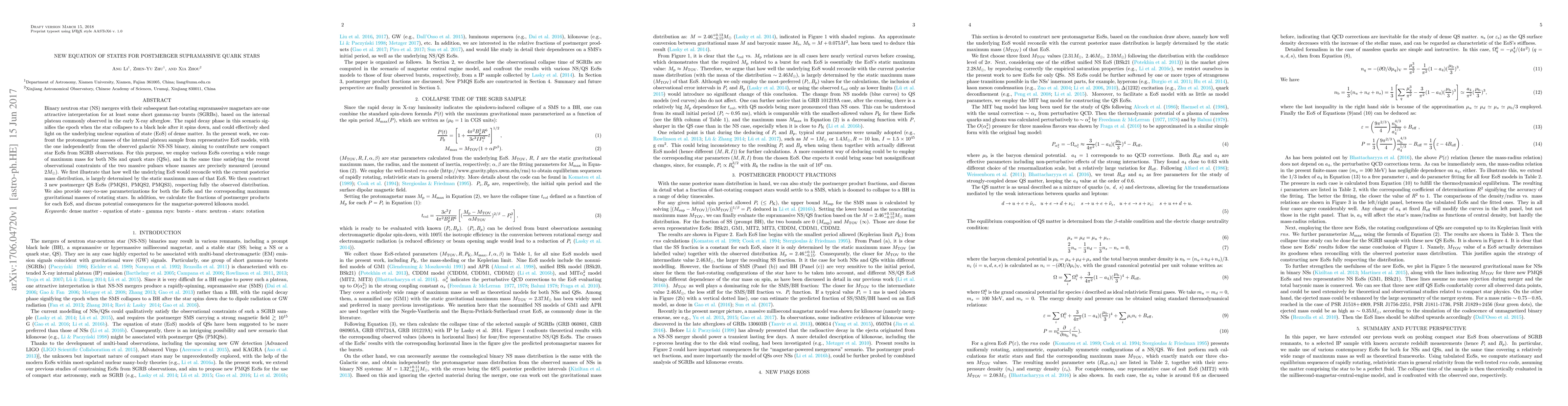 Binary neutron star (NS) mergers with their subsequent fast-rotating supramassive magnetars are one attractive interpretation for at least some short gamma-ray bursts (SGRBs), based on the internal plateau commonly observed in the early X-ray afterglow. The rapid decay phase in this scenario signifies the epoch when the star collapses to a black hole after it spins down, and could effectively shed light on the underlying unclear equation of state (EoS) of dense matter. In the present work, we confront the protomagnetar masses of the internal plateau sample from representative EoS models, with the one independently from the observed galactic NS-NS binary, aiming to contribute new compact star EoSs from SGRB observations. For this purpose, we employ various EoSs covering a wide range of maximum mass for both NSs and quark stars (QSs), and in the same time satisfying the recent observational constraints of the two massive pulsars whose masses are precisely measured (around $2 M_{\odot}$). We first illustrate that how well the underlying EoS would reconcile with the current posterior mass distribution, is largely determined by the static maximum mass of that EoS. We then construct 3 new postmerger QS EoSs (PMQS1, PMQS2, PMQS3), respecting fully the observed distribution. We also provide easy-to-use parameterizations for both the EoSs and the corresponding maximum gravitational masses of rotating stars. In addition, we calculate the fractions of postmerger products for each EoS, and discuss potential consequences for the magnetar-powered kilonova model.