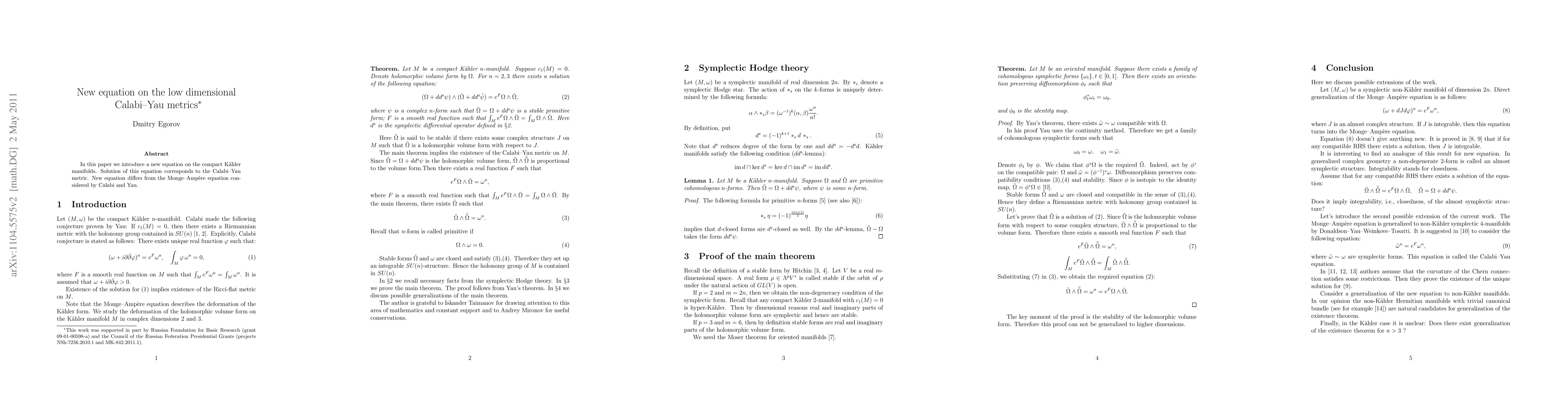 This paper proposes a novel equation on compact Kähler manifolds that corresponds to the Calabi-Yau metric, differing from the traditional Monge-Ampere equation studied by Calabi and Yau. The new equation may offer a different approach to understanding these metrics.