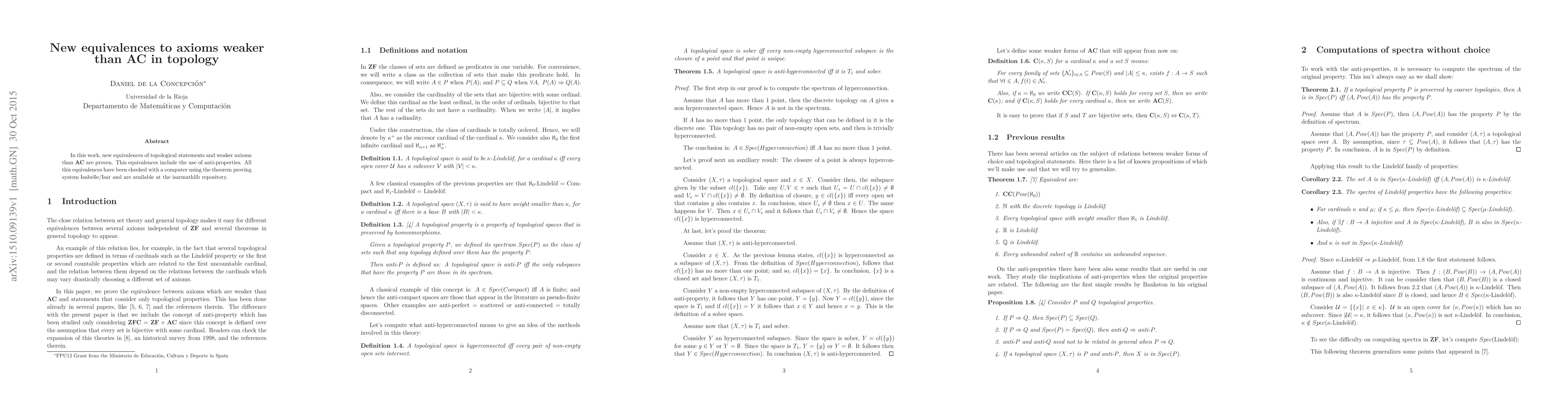 Researchers prove new equivalences between topological statements and weaker axioms than the Axiom of Choice (AC) using computer-assisted methods, enabling more efficient proofs in topology.