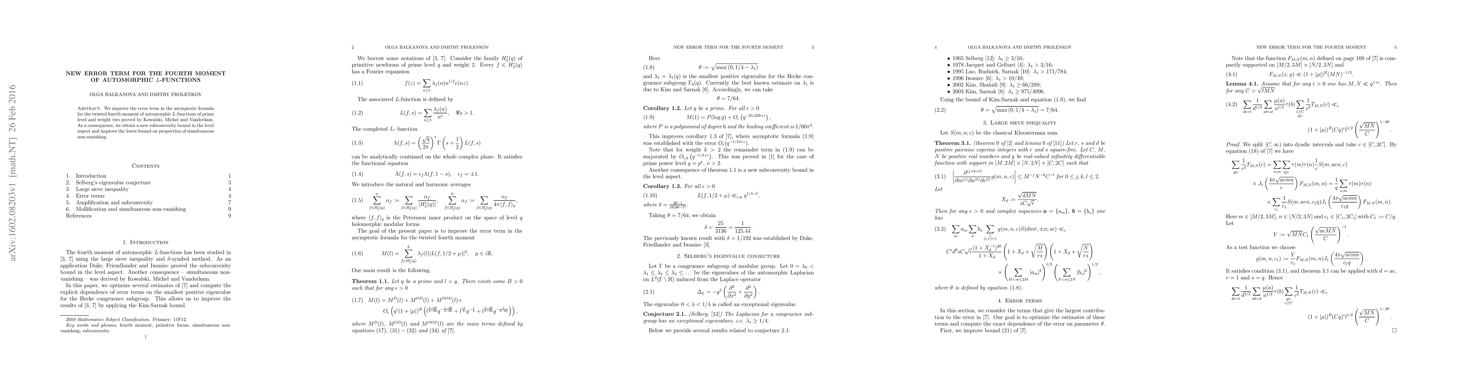 This paper refines the error term in the asymptotic formula for the twisted fourth moment of automorphic L functions, leading to a new subconvexity bound and an enhanced lower bound on the proportion of simultaneous non-vanishing.