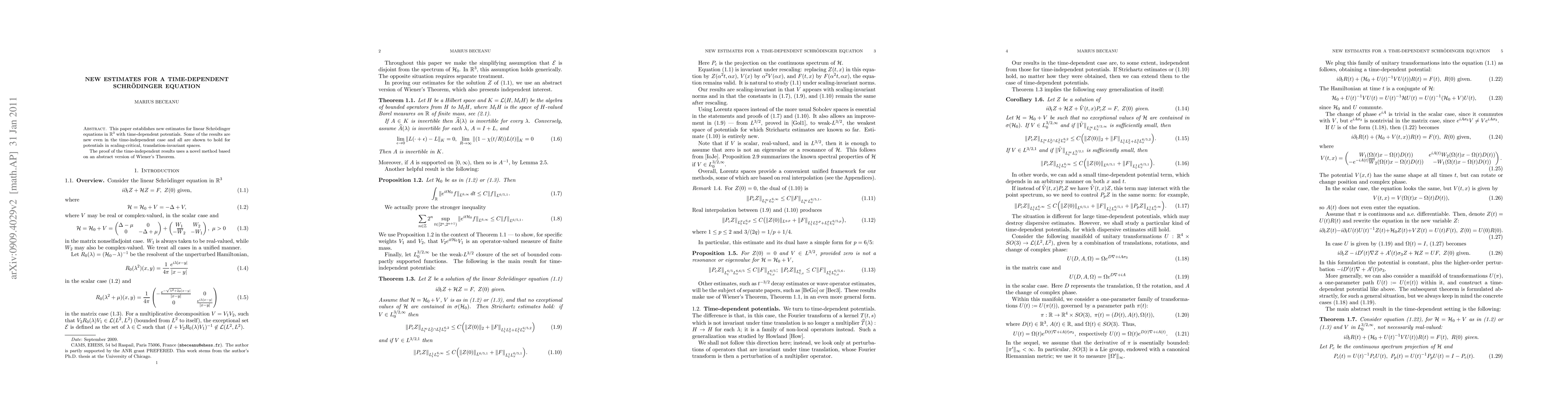 This paper presents new estimates for linear Schrödinger equations in three-dimensional space with time-dependent potentials, including novel results for the time-independent case, and applies them to potentials in scaling-critical, translation-invariant spaces. The time-independent results are proven using a new method based on an abstract Wiener's Theorem.