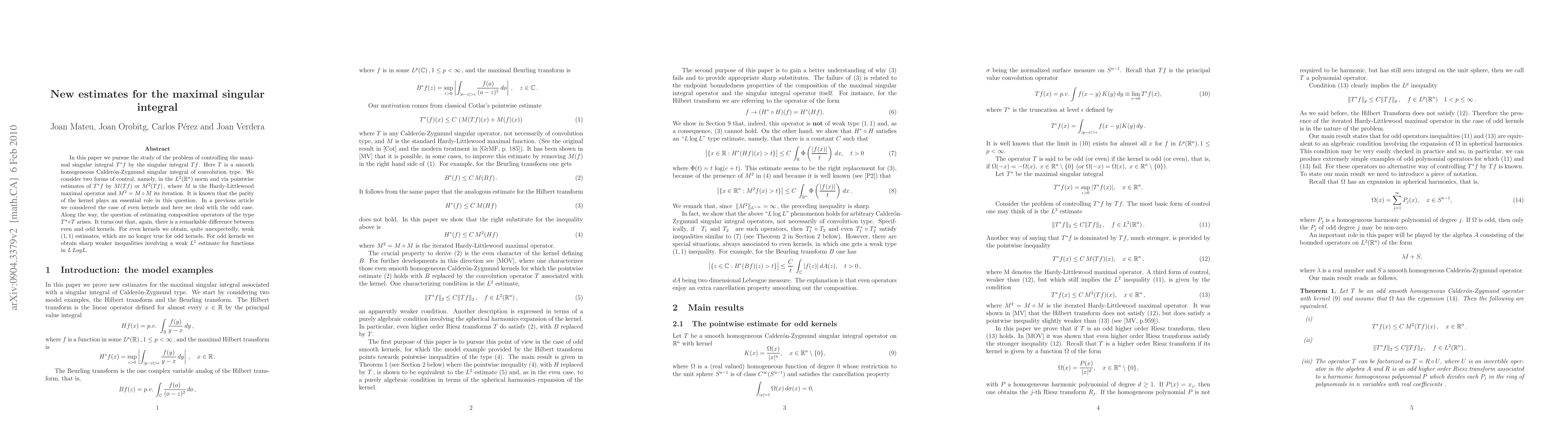 Researchers developed new estimates for controlling the maximal singular integral of a smooth homogeneous Calderon-Zygmund operator, finding weaker inequalities involving a weak L^1 estimate for odd kernels versus unexpected weak (1,1) estimates for even kernels.
