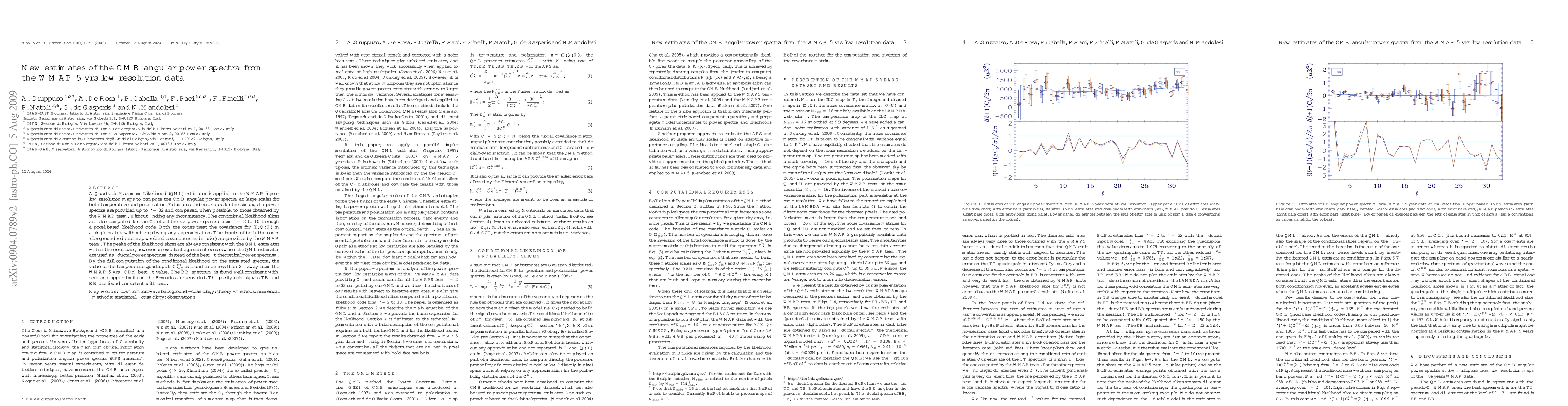The paper updates CMB angular power spectra estimates from WMAP 5 years low-resolution data using a Quadratic Maximum Likelihood estimator, finding consistency with existing values and new constraints on B-modes.