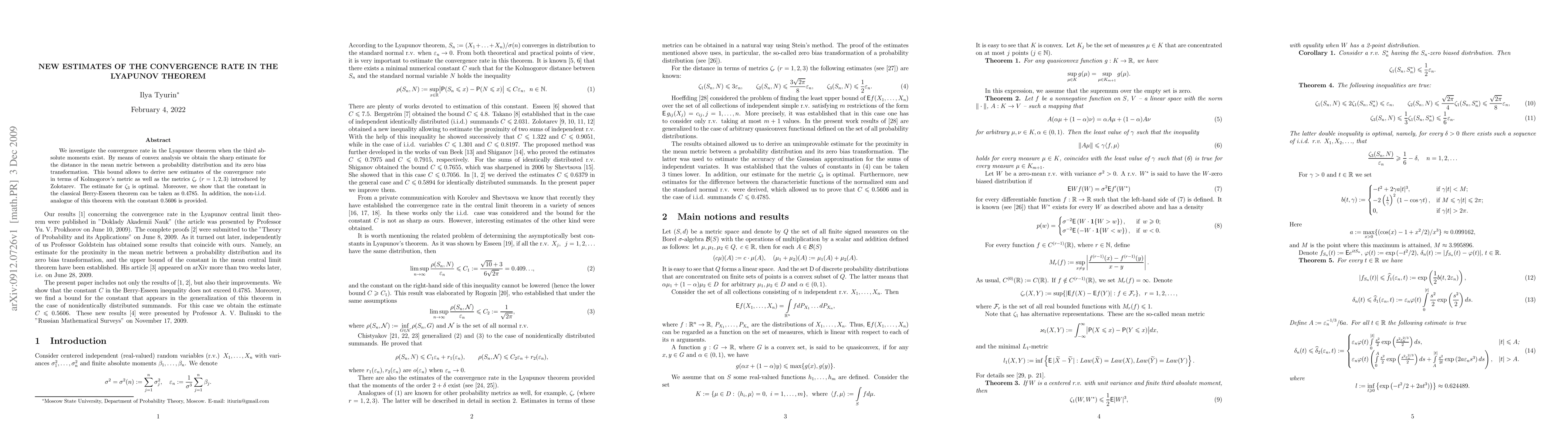 We investigate the convergence rate in the Lyapunov theorem when the third absolute moments exist. By means of convex analysis we obtain the sharp estimate for the distance in the mean metric between a probability distribution and its zero bias transformation. This bound allows to derive new estimates of the convergence rate in terms of Kolmogorov's metric as well as the metrics $\zeta_r$ (r=1,2,3) introduced by Zolotarev. The estimate for $\zeta_3$ is optimal. Moreover, we show that the constant in the classical Berry-Esseen theorem can be taken as 0.4785. In addition, the non-i.i.d. analogue of this theorem with the constant 0.5606 is provided.