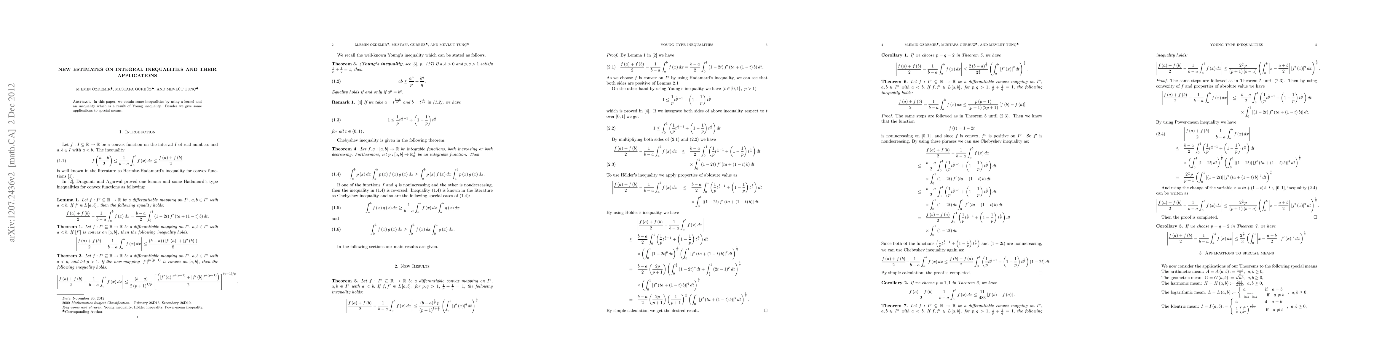 In this paper, we obtain some inequalities by using a kernel and an inequality which is a result of Young inequality. Besides we give some applications to special means.