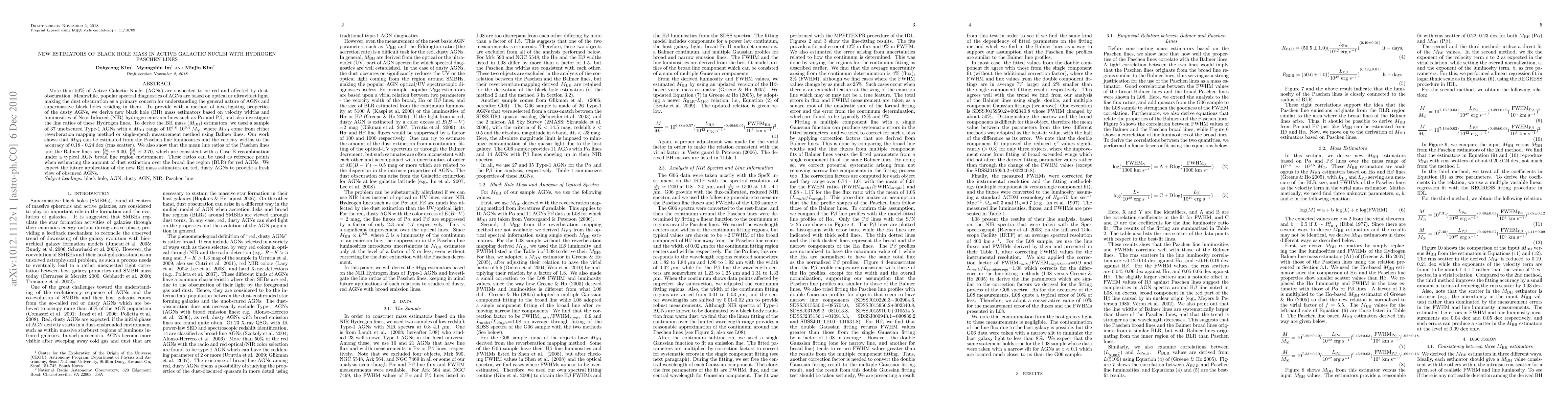 More than 50% of Active Galactic Nuclei (AGNs) are suspected to be red and affected by dust-obscuration. Meanwhile, popular spectral diagnostics of AGNs are based on optical or ultraviolet light, making the dust obscuration as a primary concern for understanding the general nature of AGNs and supermassive black holes residing in them. To provide with a method of investigating properties of the dusty AGNs, we derive new black hole (BH) mass estimators based on velocity widths and luminosities of Near Infrared (NIR) hydrogen emission lines such as P$\alpha$ and P$\beta$, and also investigate the line ratios of these Hydrogen lines. To derive the BH mass ($M_{\rm BH}$) estimators, we used a sample of 37 unobscured Type-1 AGNs with a $M_{\rm BH}$ range of $10^{6.8}$-$10^{9.4} M_{\odot}$, where $M_{\rm BH}$ come from either reverberation mapping method or single-epoch measurement method using Balmer lines. Our work shows that $M_{\rm BH}$ can be estimated from the Paschen line luminosities and the velocity widths to the accuracy of 0.18 - 0.24 dex (rms scatter). We also show that the mean line ratios of the Paschen lines and the Balmer lines are $\mathrm{\frac{H\alpha}{P\alpha}} \simeq 9.00$, $\mathrm{\frac{H\beta}{P\alpha}} \simeq 2.70$, which are consistent with a Case B recombination under a typical AGN broad line region environment. These ratios can be used as reference points when estimating the amount of dust extinction over the broad line region (BLR) for red AGNs. We expect the future application of the new BH mass estimators on red, dusty AGNs to provide a fresh view of obscured AGNs.