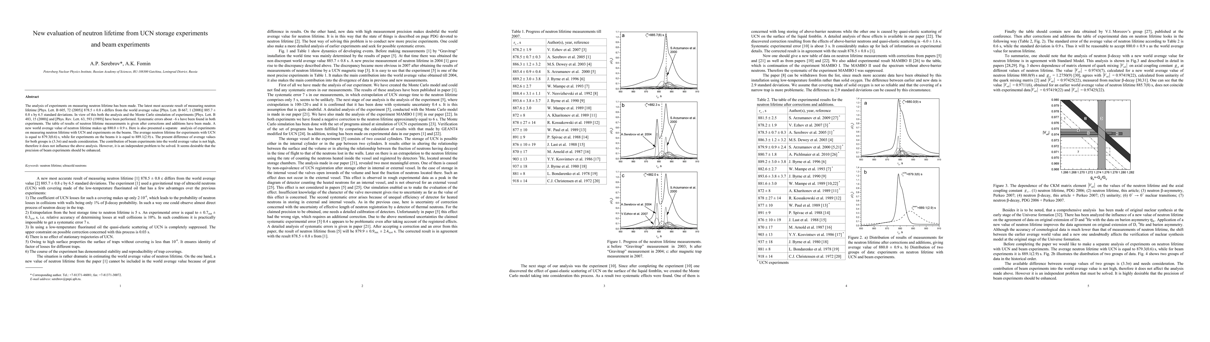 A new evaluation of neutron lifetime from ultra-cold neutrons (UCN) storage experiments and beam experiments has corrected the discrepancy between previous results, yielding a new world average value of 880.0 s with an uncertainty of 0.9 s.