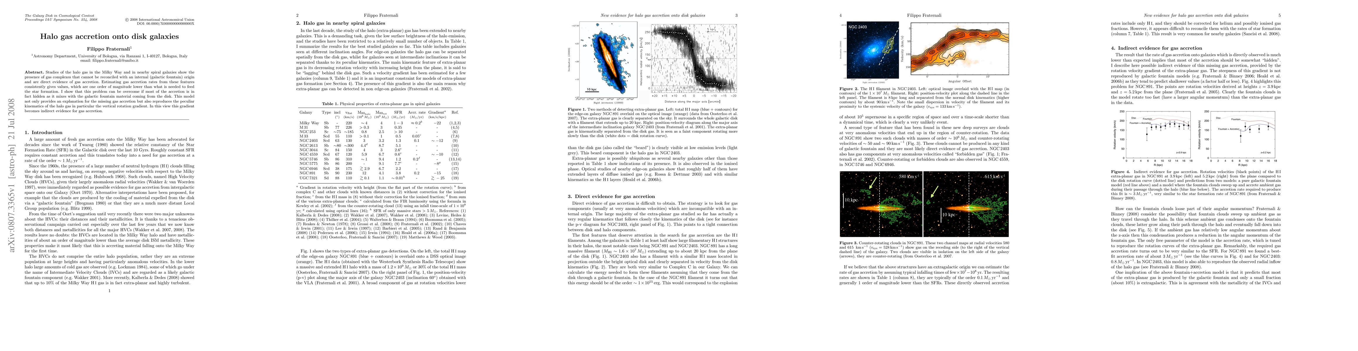 This paper presents evidence for gas accretion onto disk galaxies through halo gas complexes, showing that accretion rates are underestimated due to the mixing of accreted gas with material from the galactic fountain. The model explains the missing gas and reproduces the peculiar kinematics of the halo gas, including the vertical rotation gradient.