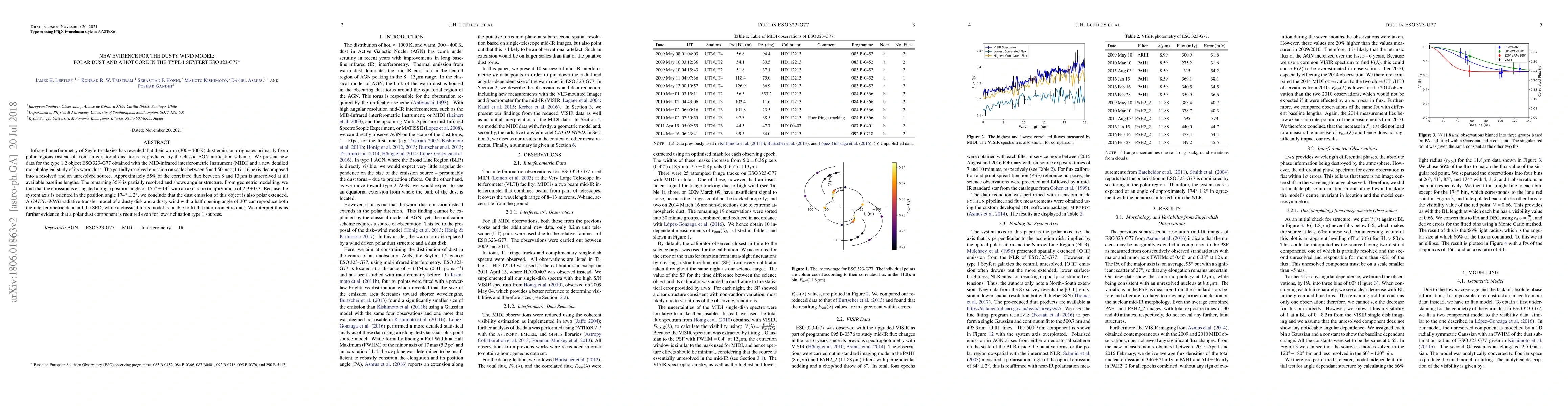 Infrared interferometry of Seyfert galaxies has revealed that their warm ($300-400\,$K) dust emission originates primarily from polar regions instead of from an equatorial dust torus as predicted by the classic AGN unification scheme. We present new data for the type 1.2 object ESO$\,$323-G77 obtained with the MID-infrared interferometric Instrument (MIDI) and a new detailed morphological study of its warm dust. The partially resolved emission on scales between $5$ and $50\,$mas ($1.6-16\,$pc) is decomposed into a resolved and an unresolved source. Approximately $65\%$ of the correlated flux between $8$ and $13\,\mu\mathrm{m}$ is unresolved at all available baseline lengths. The remaining $35\%$ is partially resolved and shows angular structure. From geometric modelling we find that the emission is elongated along a position angle of $155^\circ\pm14^\circ$ with an axis ratio (major/minor) of $2.9\pm0.3$. Because the system axis is oriented in position angle $174^\circ\pm2^\circ$, we conclude that the dust emission of this object is also polar extended. A $\textit{CAT3D-WIND}$ radiative transfer model of a dusty disk and a dusty wind with a half opening angle of $30^\circ$ can reproduce both the interferometric data and the SED, while a classical torus model is unable to fit the interferometric data. We interpret this as further evidence that a polar dust component is required even for low-inclination type 1 sources.