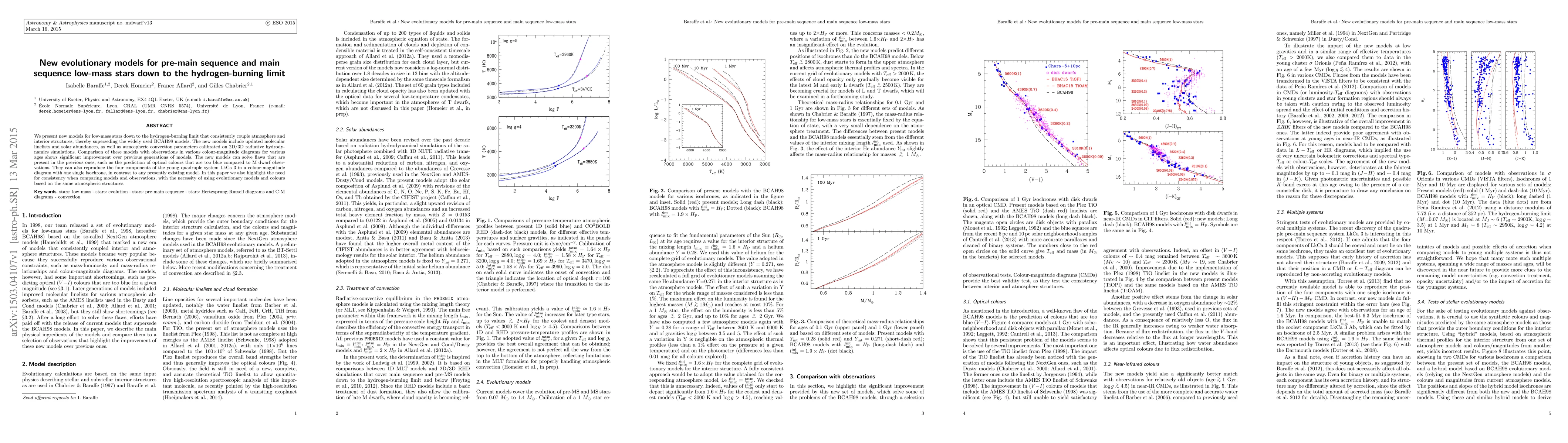 We present new models for low-mass stars down to the hydrogen-burning limit that consistently couple atmosphere and interior structures, thereby superseding the widely used BCAH98 models. The new models include updated molecular linelists and solar abundances, as well as atmospheric convection parameters calibrated on 2D/3D radiative hydrodynamics simulations. Comparison of these models with observations in various colour-magnitude diagrams for various ages shows significant improvement over previous generations of models. The new models can solve flaws that are present in the previous ones, such as the prediction of optical colours that are too blue compared to M dwarf observations. They can also reproduce the four components of the young quadruple system LkCa 3 in a colour-magnitude diagram with one single isochrone, in contrast to any presently existing model. In this paper we also highlight the need for consistency when comparing models and observations, with the necessity of using evolutionary models and colours based on the same atmospheric structures.